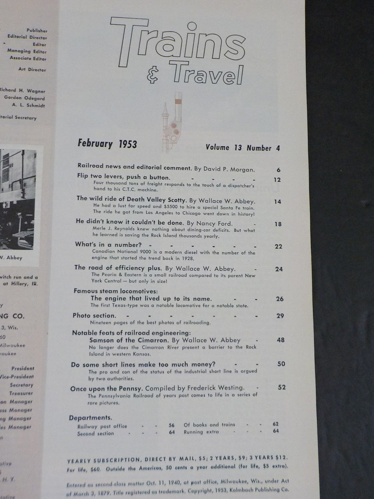 Trains February 1953 Vol 13 No 4 Back cover has a small tear