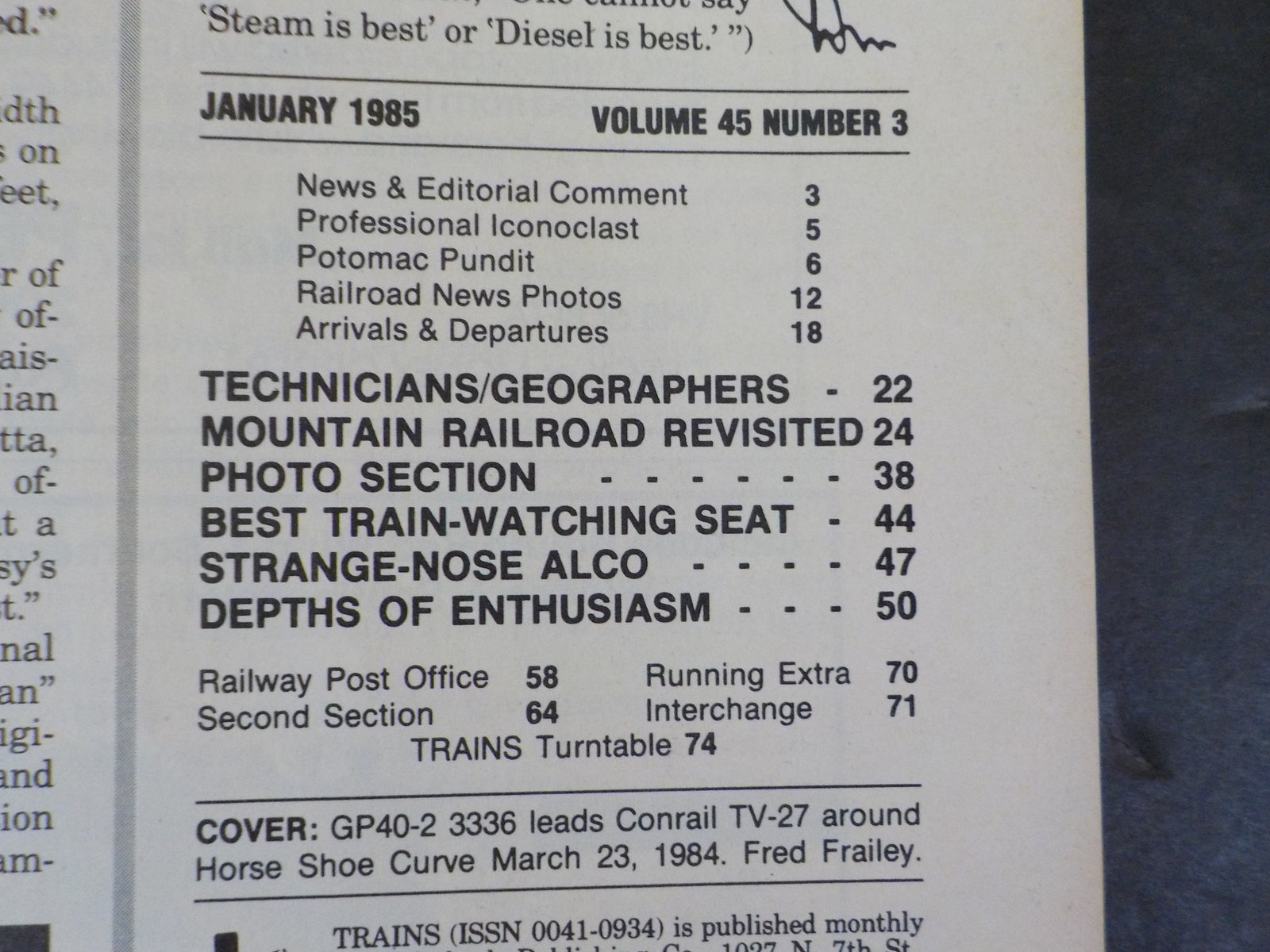 Trains Magazine 1985 January Still the worlds busiest mountain railroad Alco str