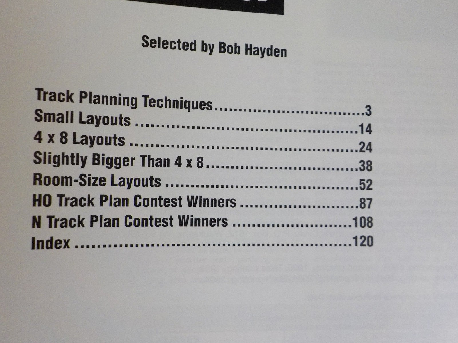 4 dozen different track plans, from small modules to room size layouts in HO, O, S, N, HOn2 1/2 and HOn3 scales