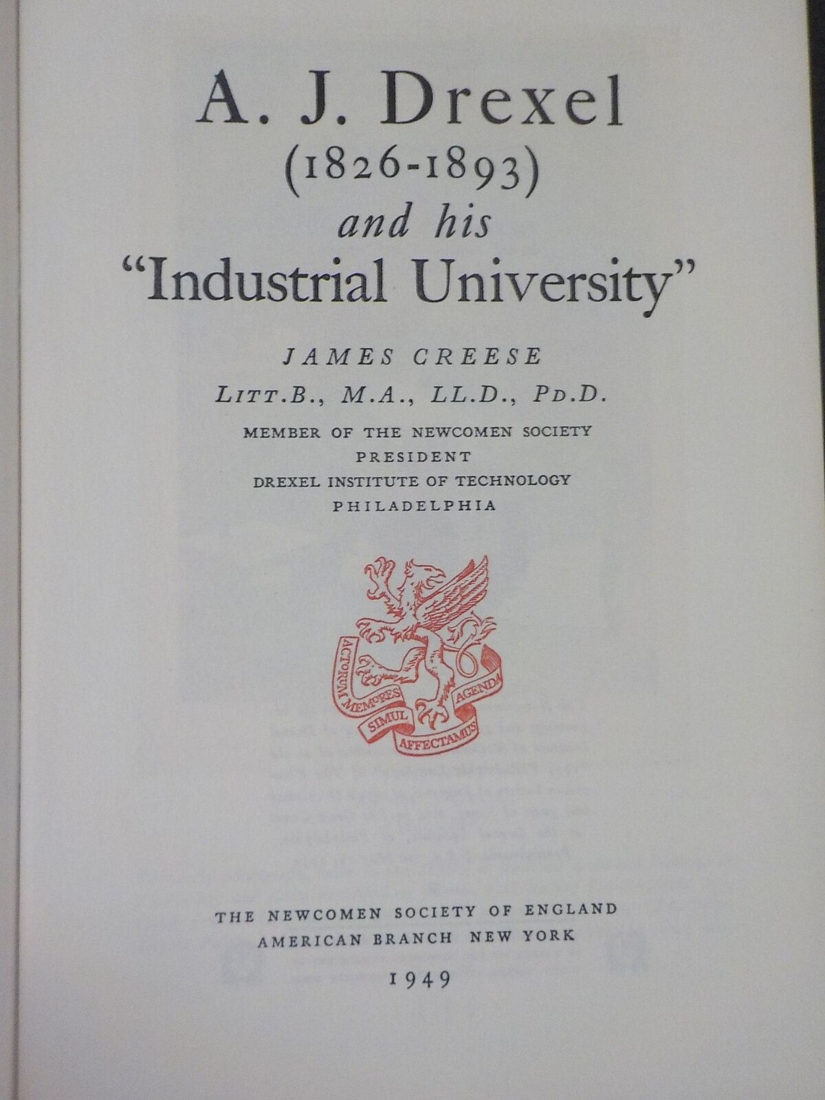 A. J. Drexel 1826-1893 and his Industrial University James Creese Newcomen Soc
