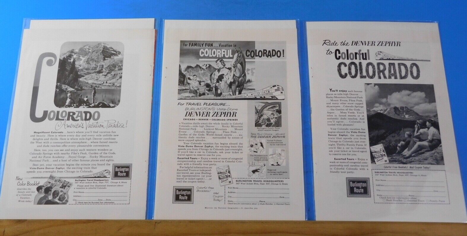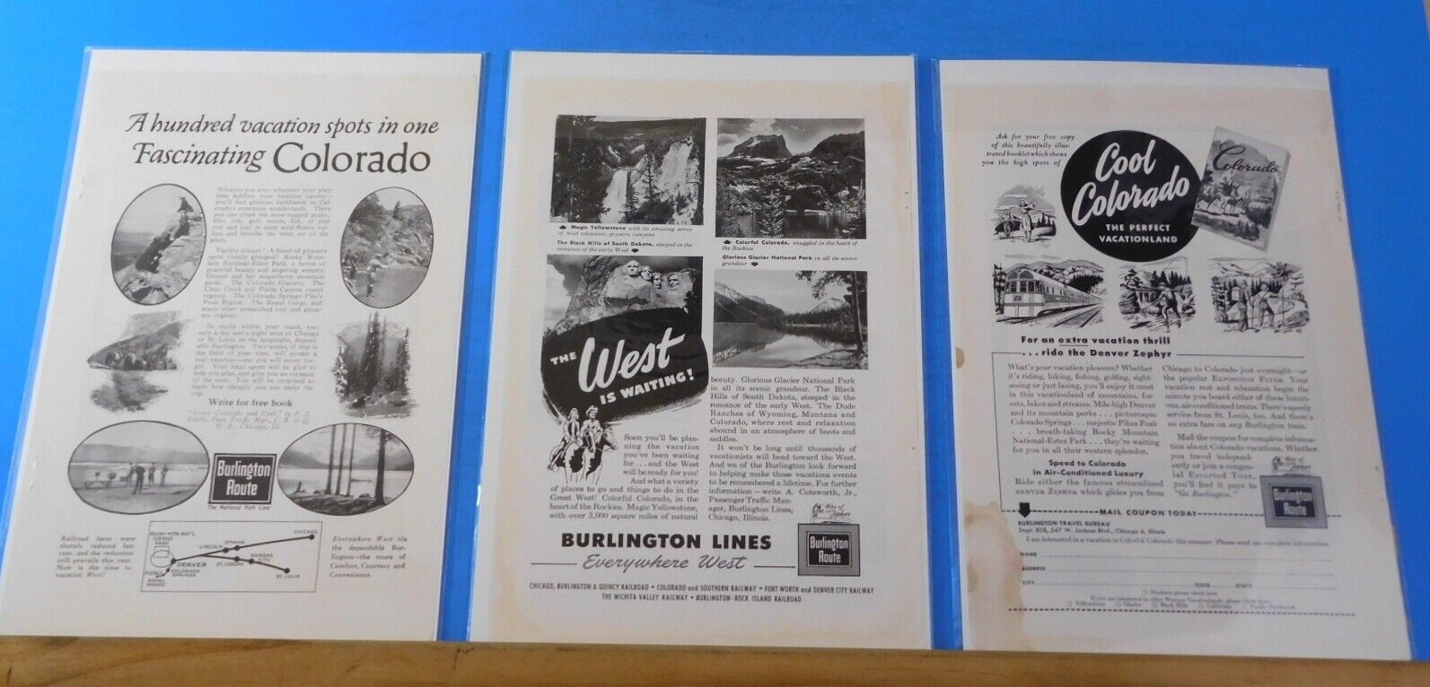 Ads Burlington Route Lot #7 Advertisements from various magazines (10)