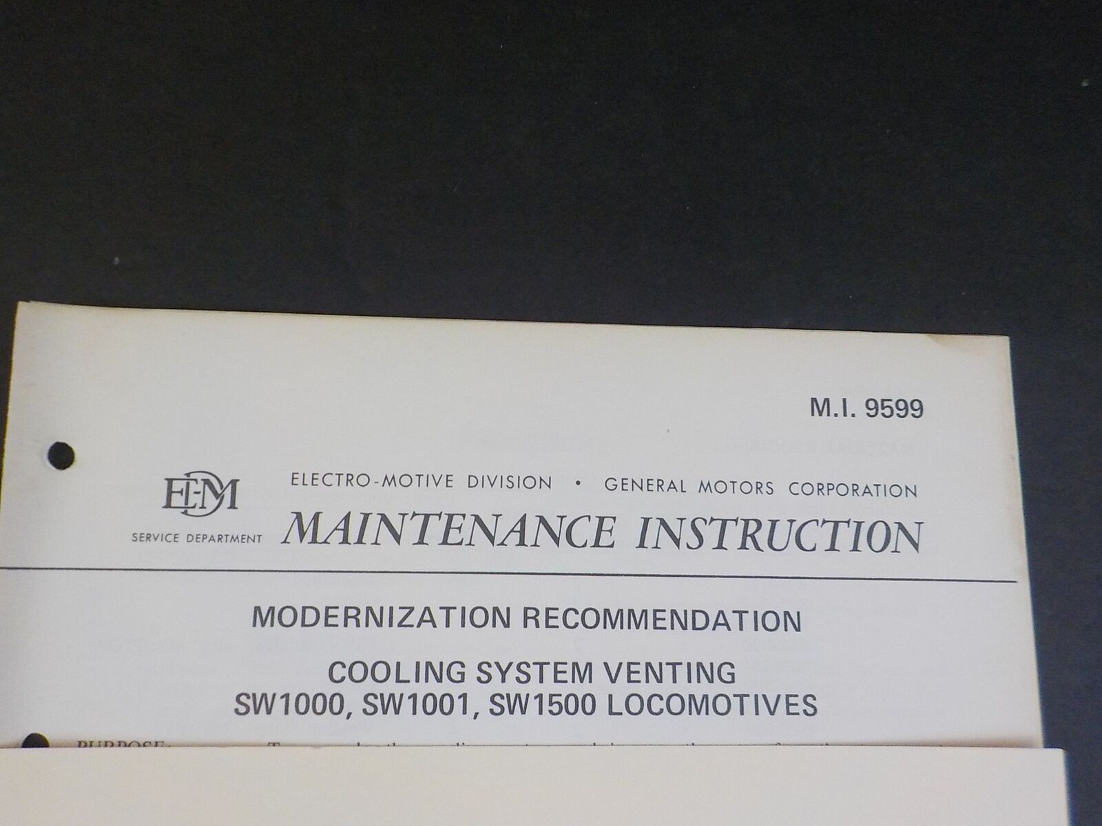 | EMD Maintenance Instructions MI 9599  April 1974 Cooling system venting SW1000    EMD Maintenance Instruction 9599   April 1974