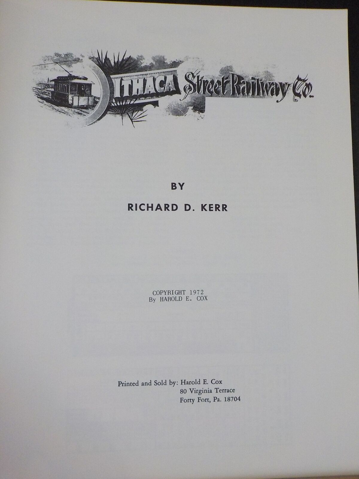 The Ithaca Street Railway by RD Kerr with map