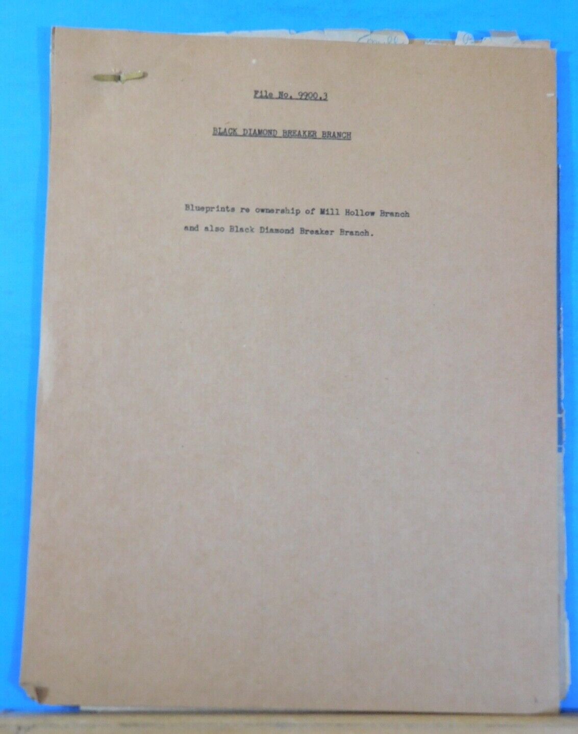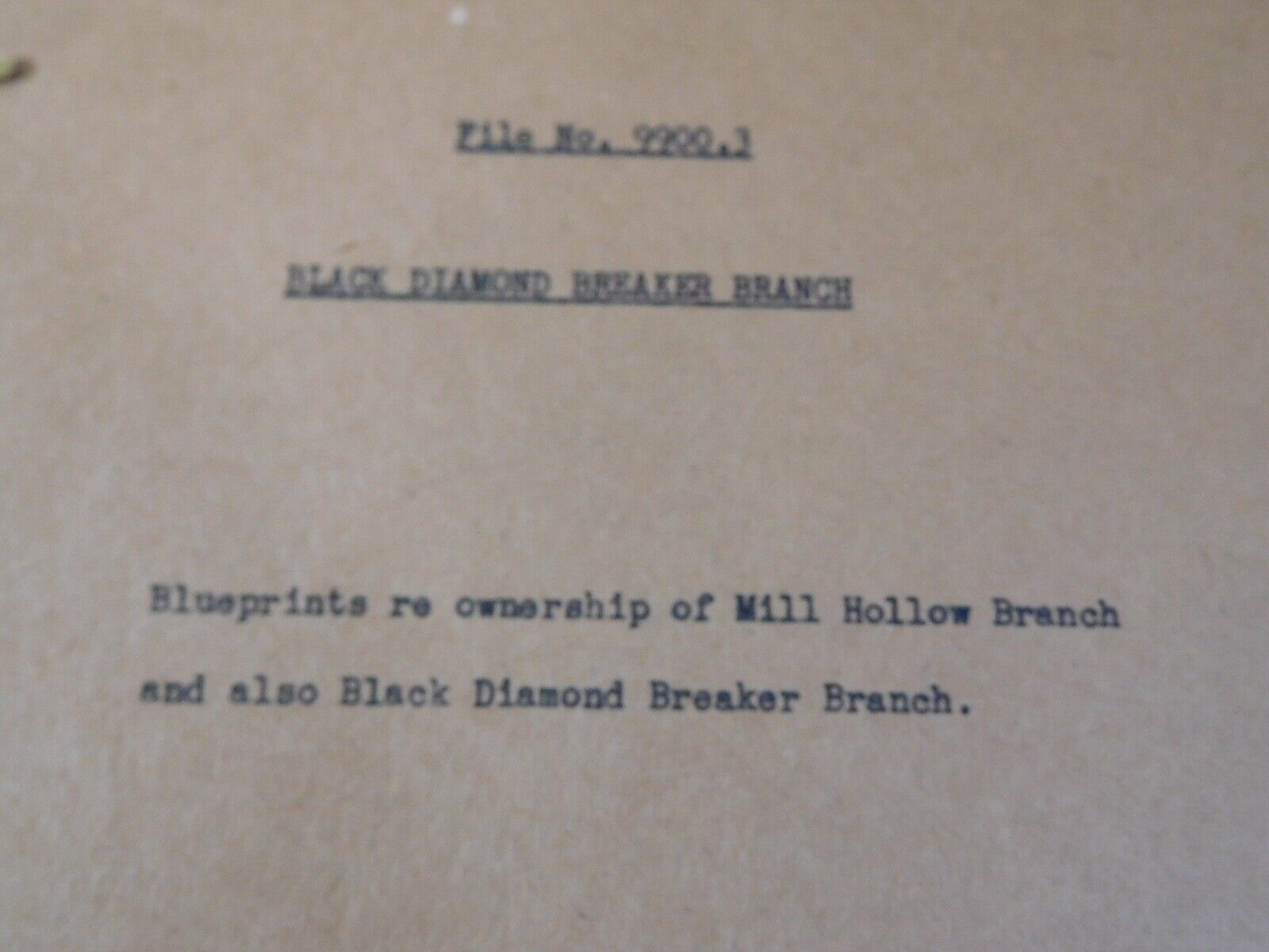 Blueprints re Ownership of Mill Hollow Branch and also Black Diamond Breaker Branch