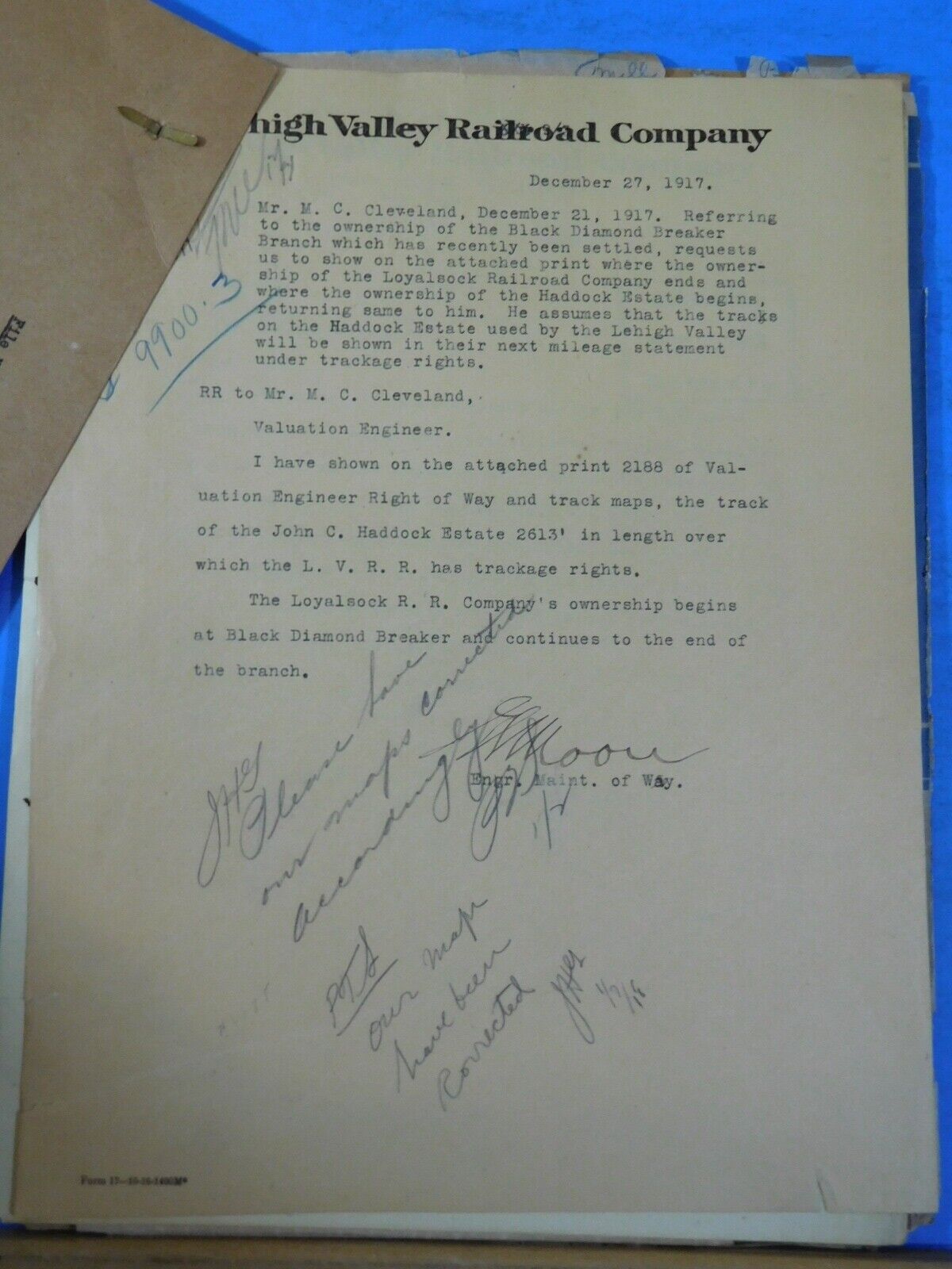 Lehigh Valley Railroad Track Map Blueprint Ownership of Land 1917 #9900.3