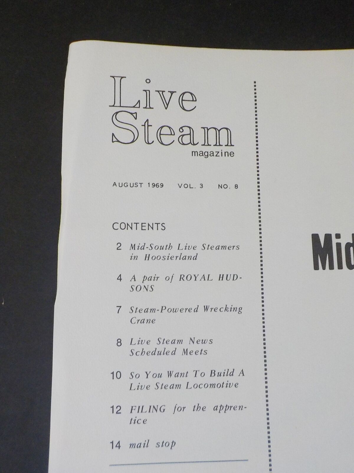 Table of contents includes: A pair of Royal Hudsons, steam powered wrecking crane, filing for the apprentice, So you want to build a live steam locomotive - valve gear, more. Photos.