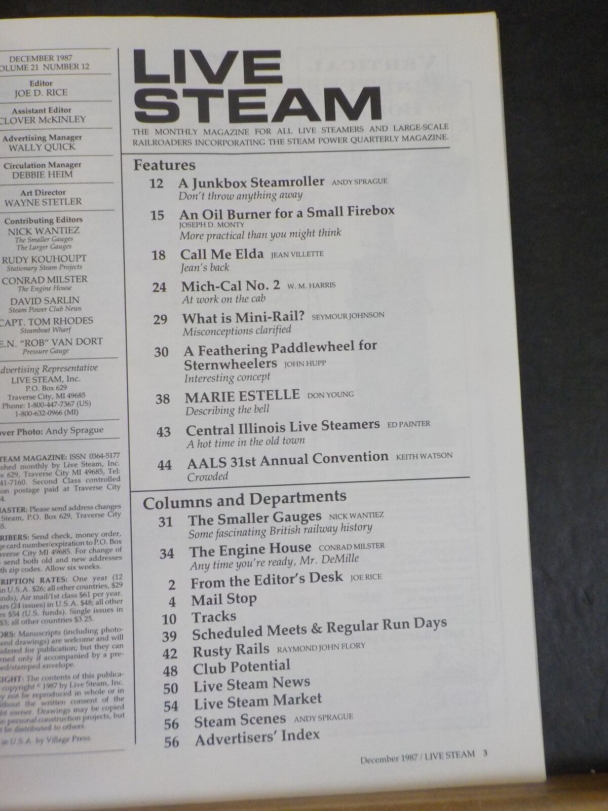 Live Steam Magazine 1987 December Junk box steamroller British Ry history