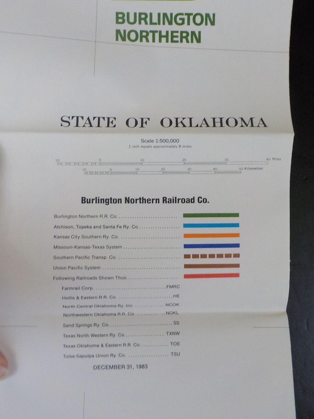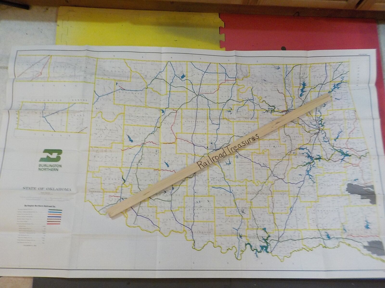 Map Burlington Northern Oklahoma State Railroad Map 1983 August