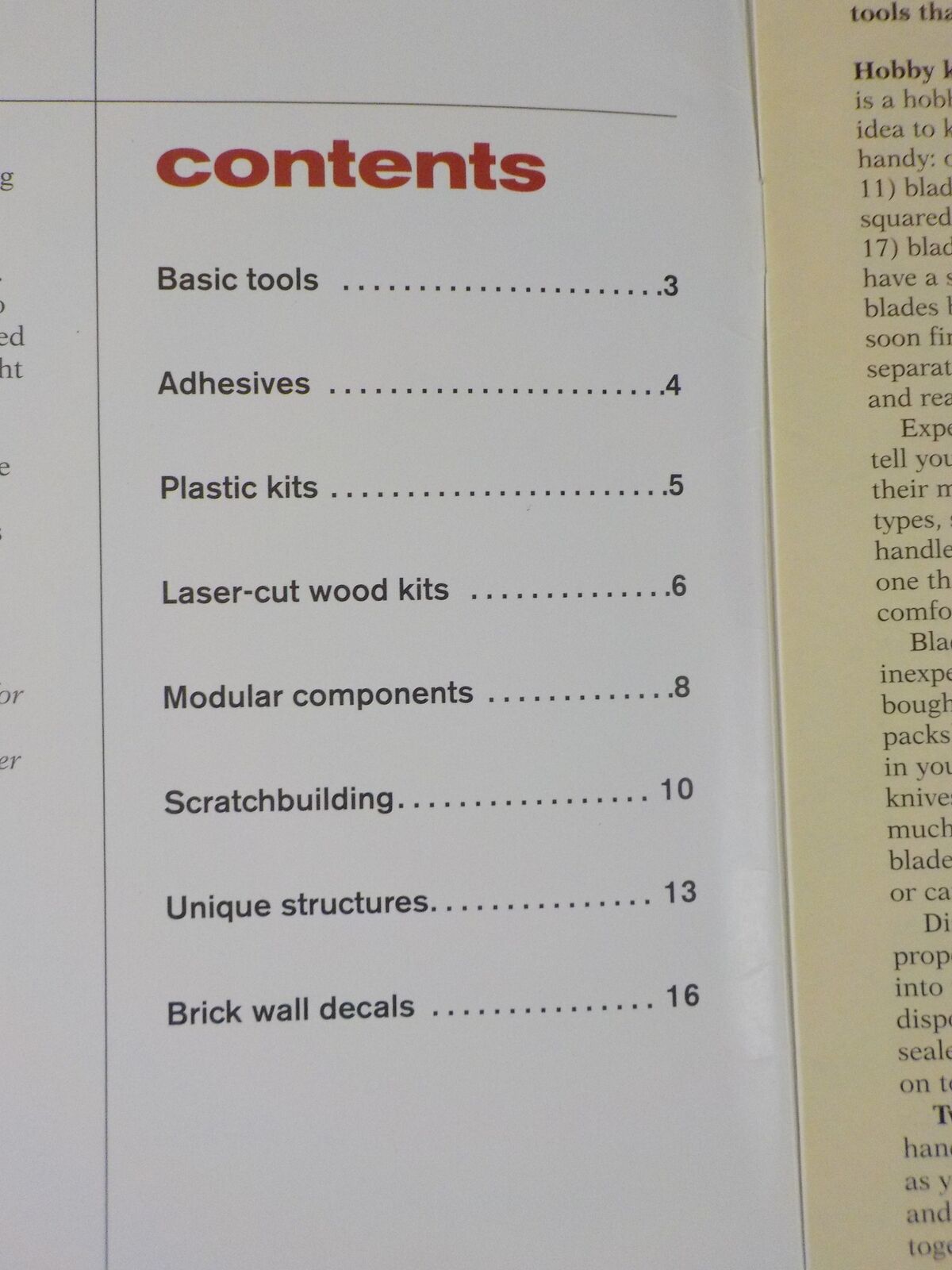 This booklet will get you started by looking at the tools and basic techniques you'll need for building and detailing structures. Other good, in-depth references on this subject include the books Basic Structure Modeling for Model Railroaders and HO Trackside Structures You Can Build, as well as articles in every issue of Model Railroader magazine, all of which are available from Kalmbach Publishing Company.