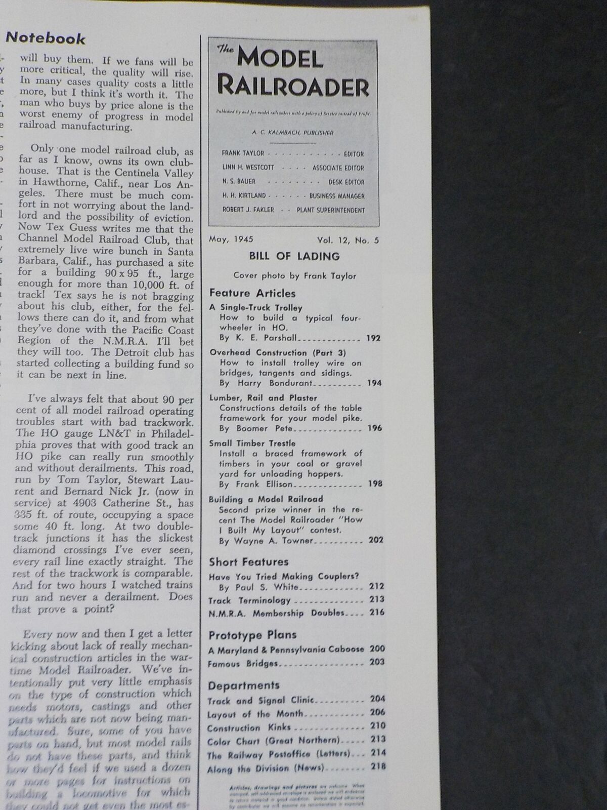 Model Railroader Magazine 1945 May Single truck trolley Caboose plans Making cou