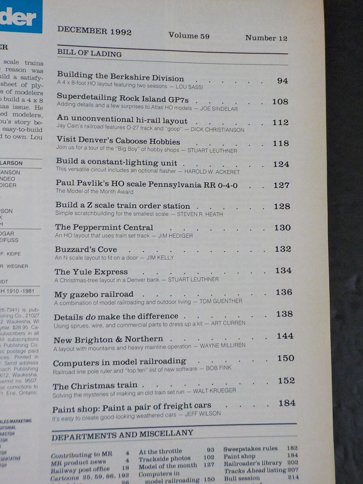Model Railroader Magazine 1992 December Track Plans 1st Layouts Rock Island GP7