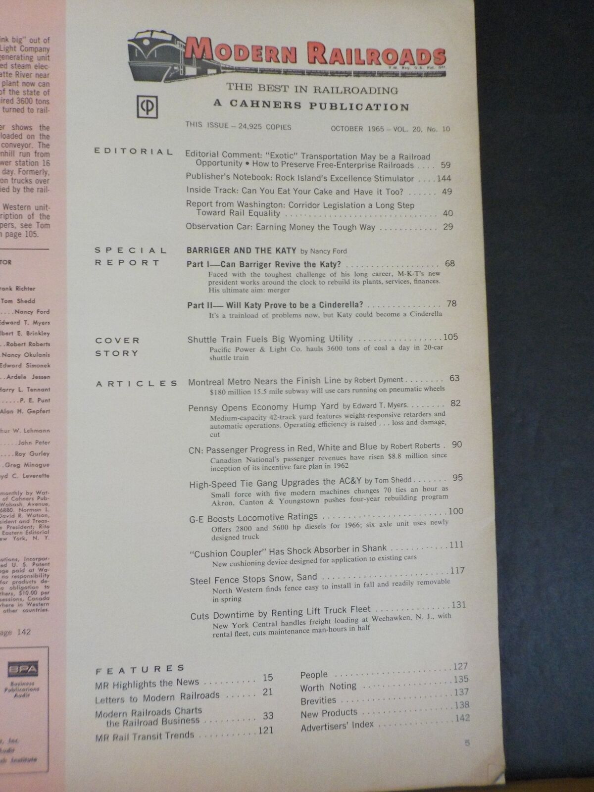 Modern Railroads 1965 October Katy in depth PRR Observation Car PP&L