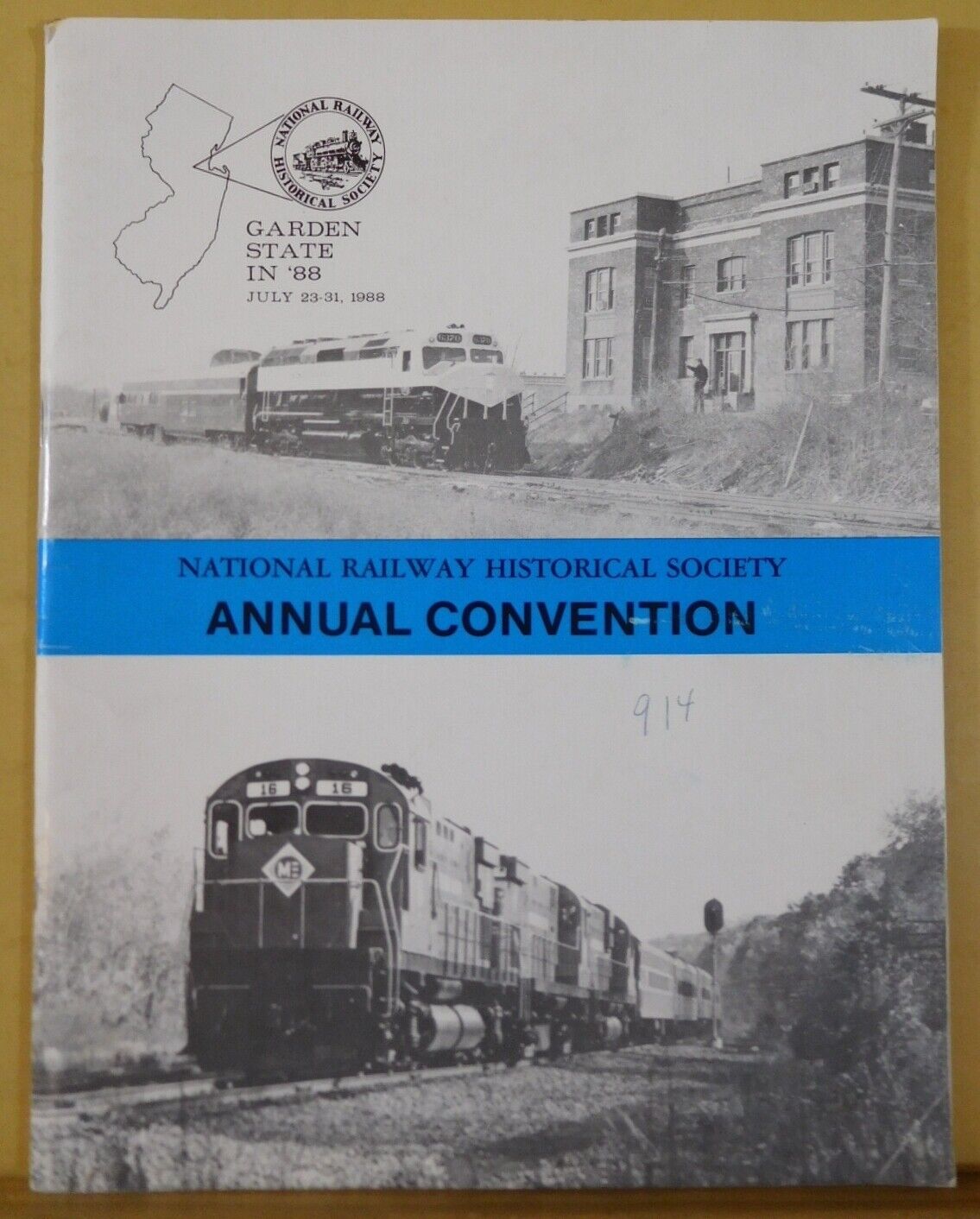 Collection of 10 articles written for the 1988 National Railway Historical Society's Annual Convention, held that year in New Jersey. The articles cover the West Shore, the Nickel Plate 765, Jersey Central Lines, the New York, Susquehanna & Western, the Camden & Amboy Early Years, the Lehigh Valley, the Erie, the Reading, the Lehigh & Hudson, and the Delaware, Lackawanna & Western. There are also 9 itineraries giving milepost descriptions of rail trips throughout New Jersey. Illustrated with black and white photos and maps. 50 pages.