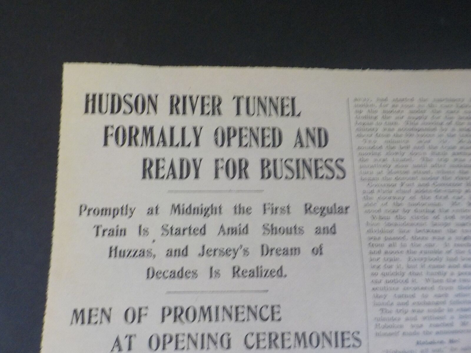 President Presses A Button and the First Official Train Runs Under the Hudson River with Two Governors Among Its Passengers