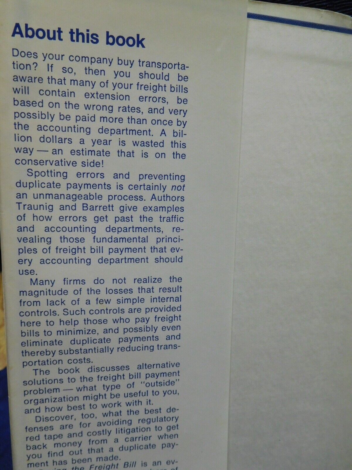 Mr. Colin Barrett, editor of Transportation & Distribution Management, published by The Traffic Service Corporation, accepted the task of restructuring the material and adding important dimensions to the current hook. The present edition, now titled "Paying the Freight Bill" reflects his efforts.