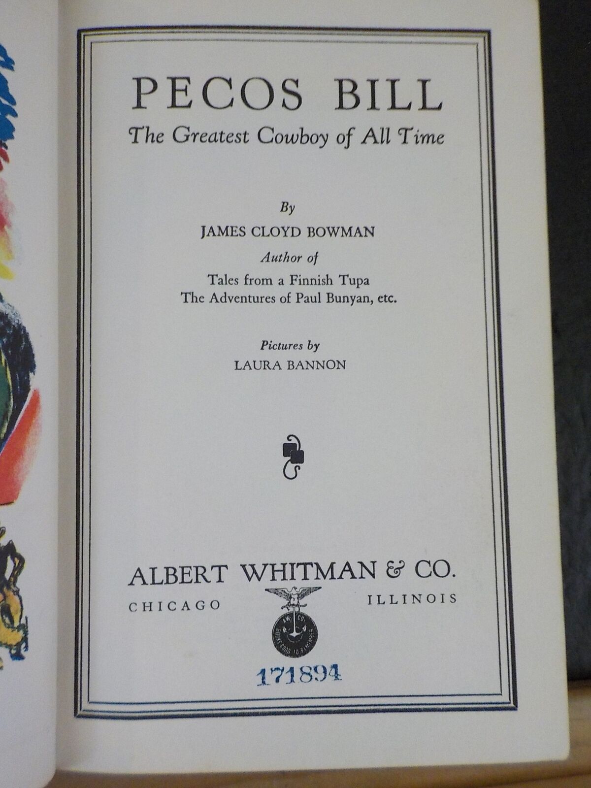 Pecos Bill by James Cloyd Bowman Hard Cover Ex-Library Book 10th printing 1959