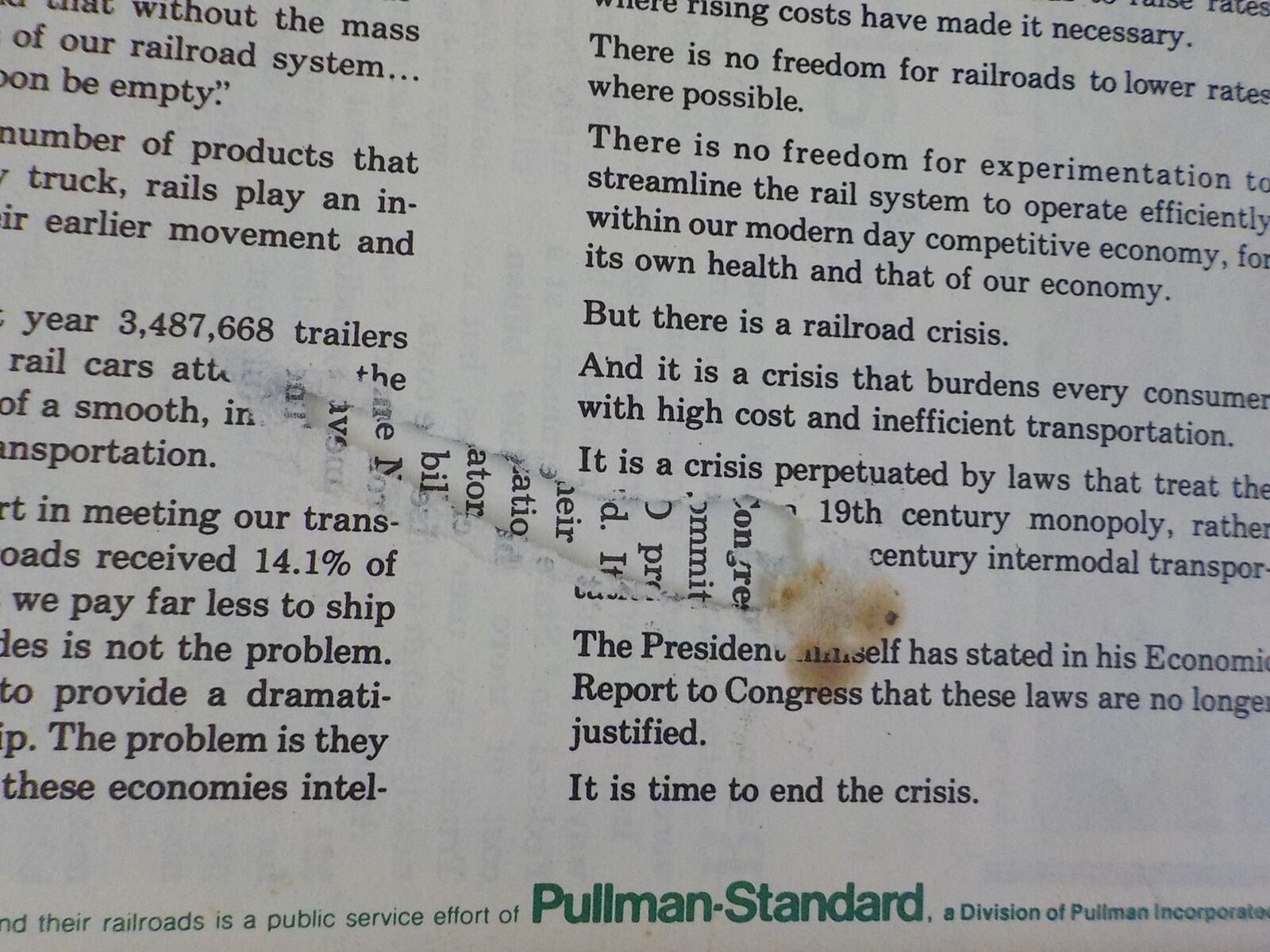 7 pages. Railroad on the move, The judge the Trustee The President shaping PCs future, quality control, Astro what it means to the railroad / nation, what about land grants, more.