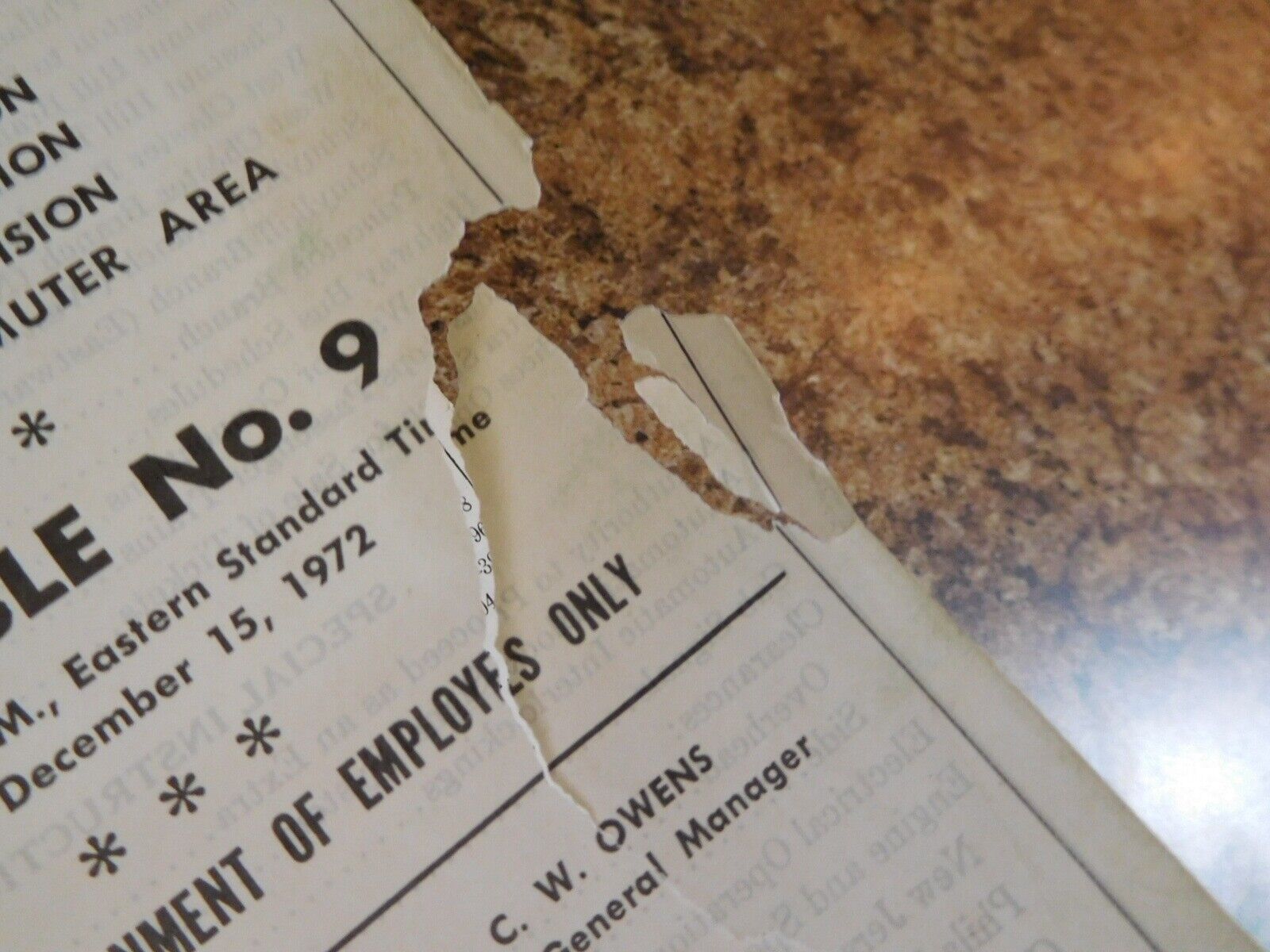Includes New Jersey Division, Chesapeake, Harrisburg divisions and Philadelphia Commuter area.    Effective December 15 1972.  Approx 430pages.  Includes schedules, special instructions,  more.