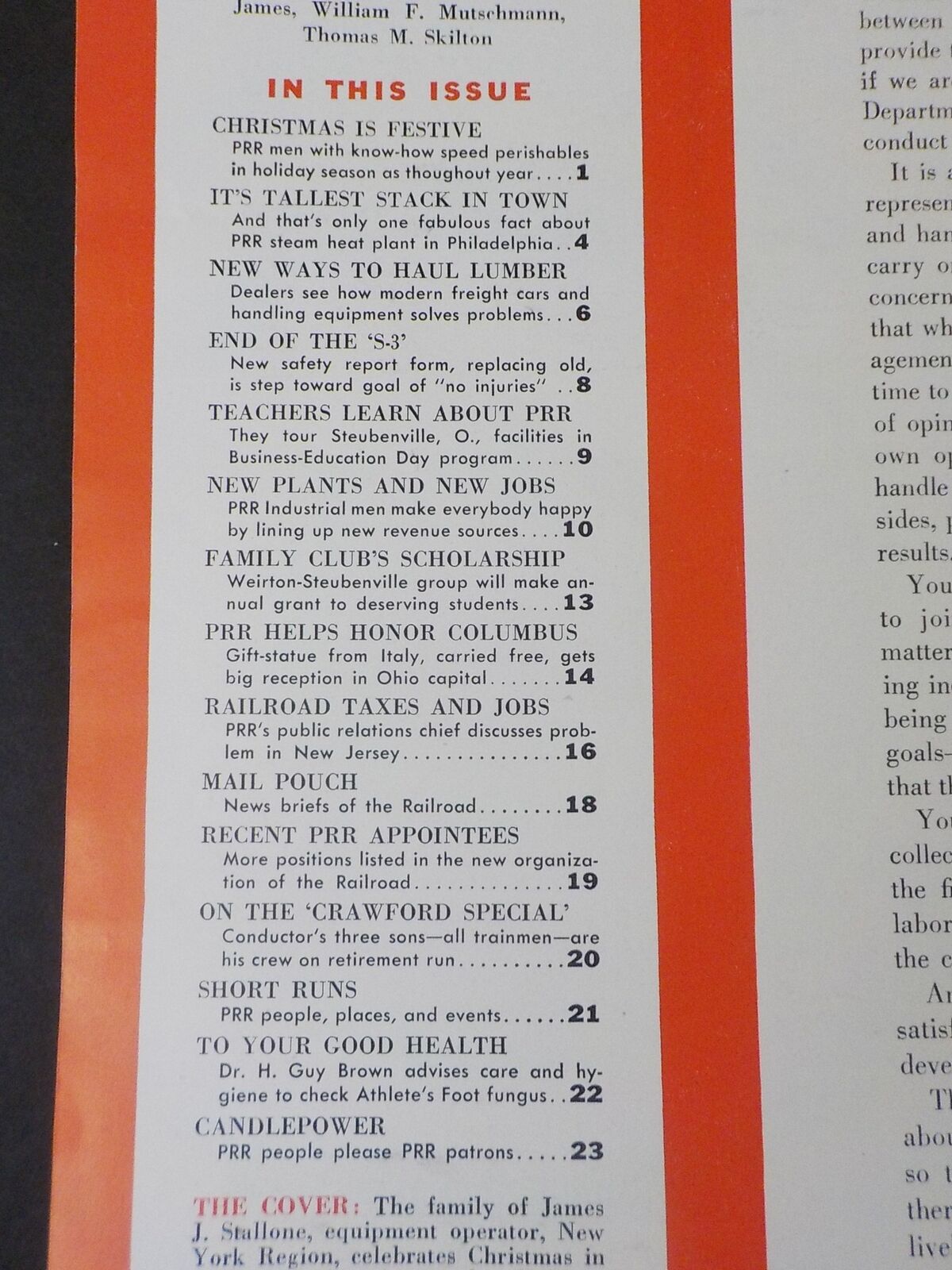 THE COVER: The family of James J. Stallone, equipment operator, New York Region, celebrates Christmas in traditional American style. Children range from 2 to 19 years old; the grandparents are both 85. Married 21 years, he's been on the PRR for 26.