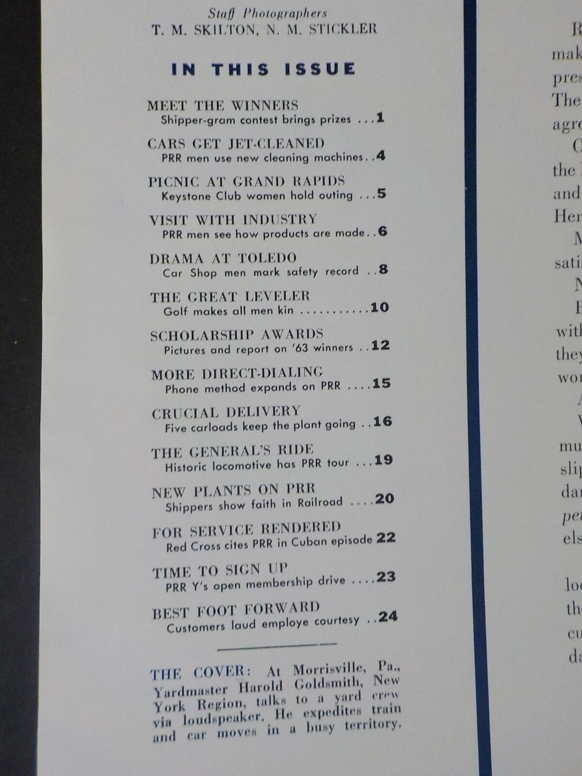 THE COVER: At Morrisville, Pa., Yardmaster Harold Goldsmith, New York Region, talks to a yard errs via loudspeaker. He expedites train and car moves in a busy territory.