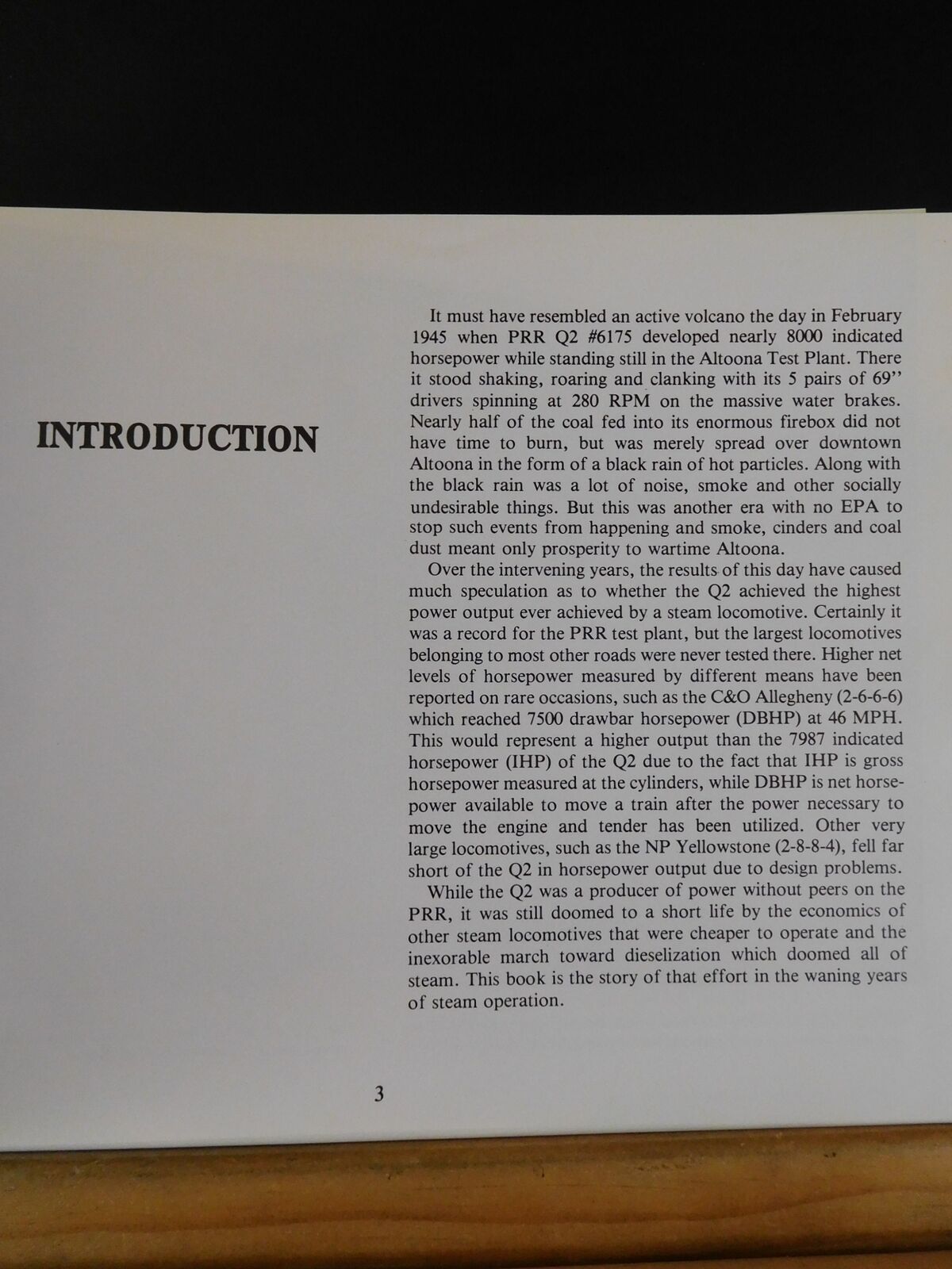 While the Q2 was a producer of power without peers on the PRR, it was still doomed to a short life by the economics of other steam locomotives that were cheaper to operate and the inexorable march toward dieselization which doomed all of steam. This book is the story of that effort in the waning years of steam operation.