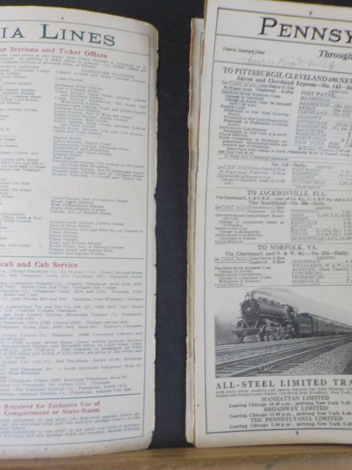 Pennsylvania Lines Passenger Service Timetable 1916 Summer