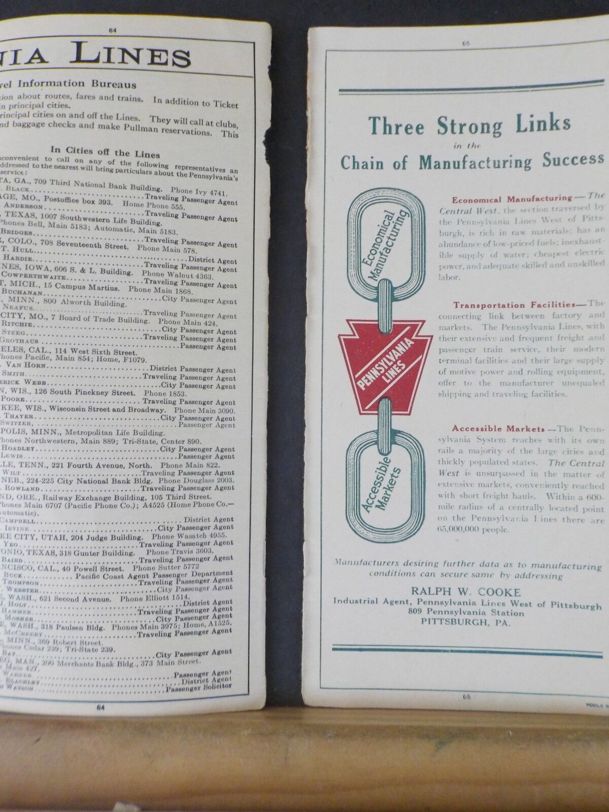 Pennsylvania Lines Passenger Service Timetable 1916 Summer MAPS Damage pg4-9 mi