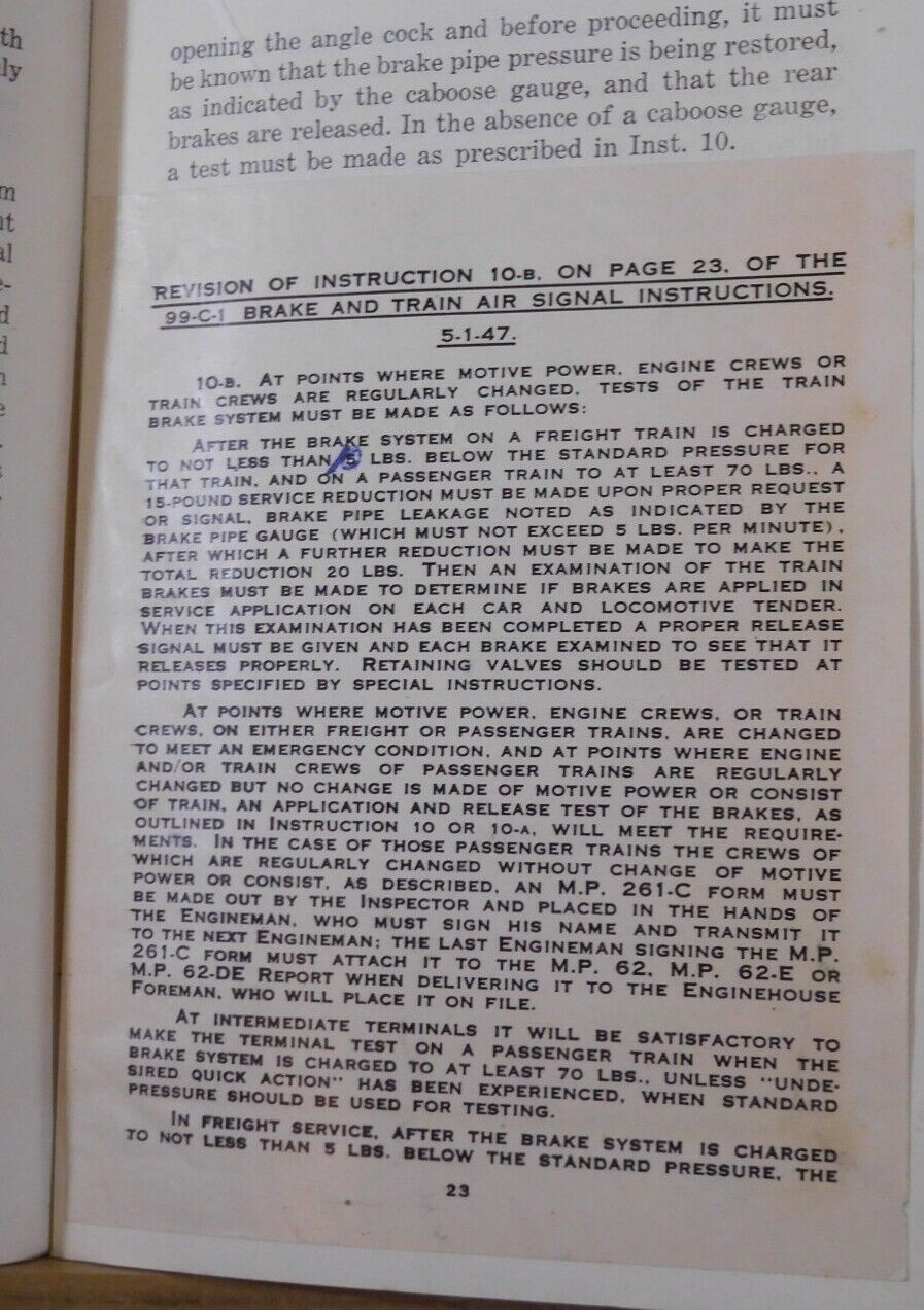 Pennsylvania Railroad Brake and Train Air Signal Instructions 1944 Booklet