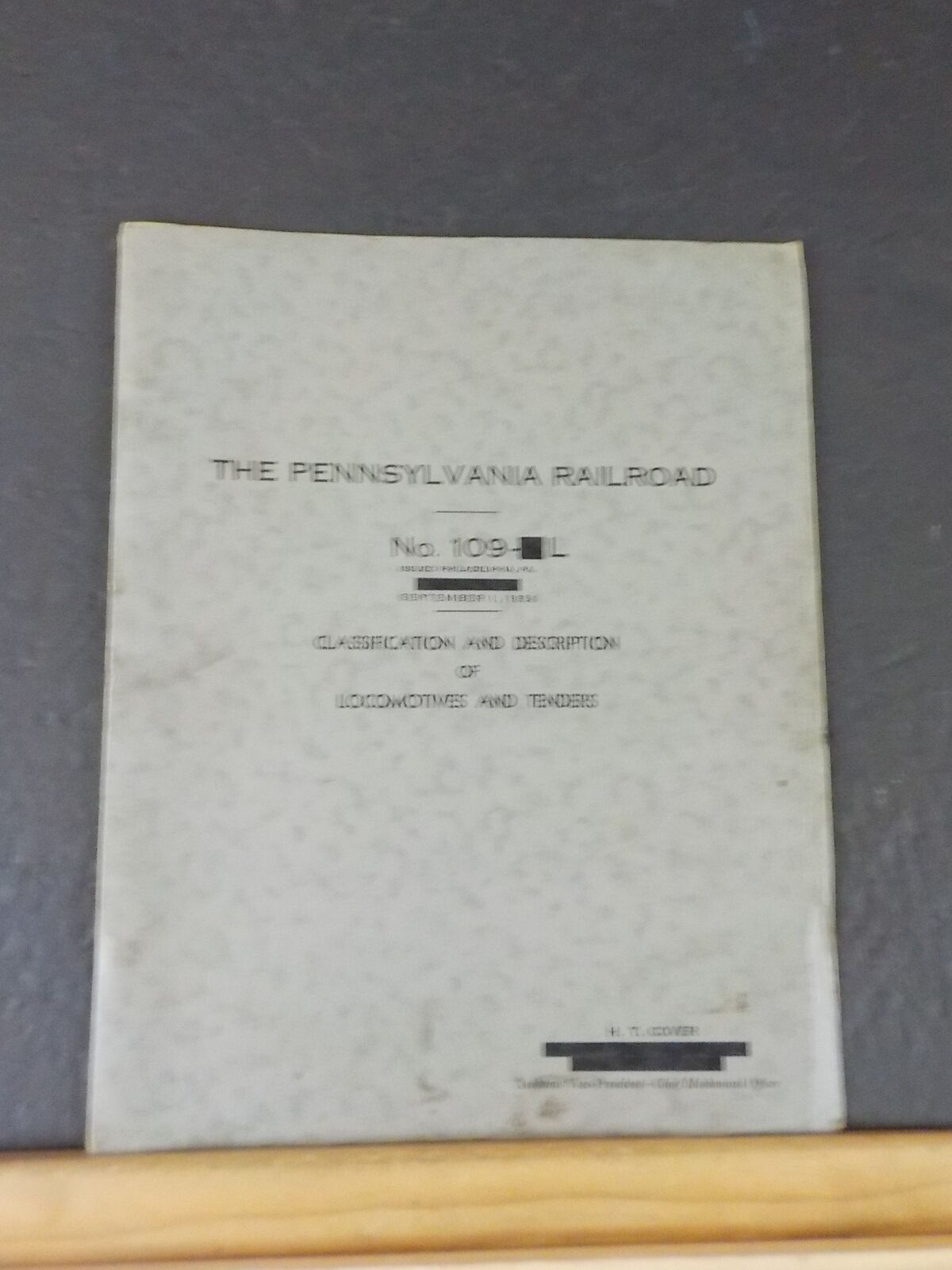 Pennsylvania Railroad Classification and Description of Locomotives & Tenders