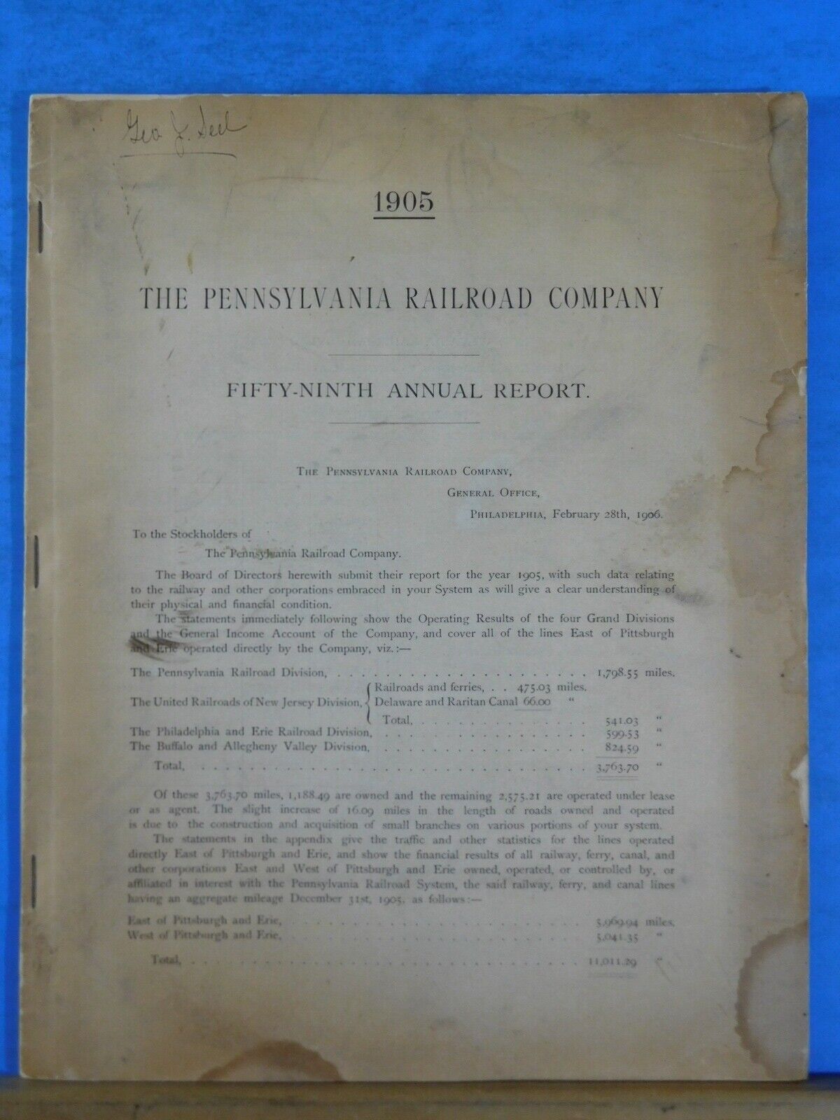 Pennsylvania Railroad Company 1905 Annual Report Soft Cover 78 pages