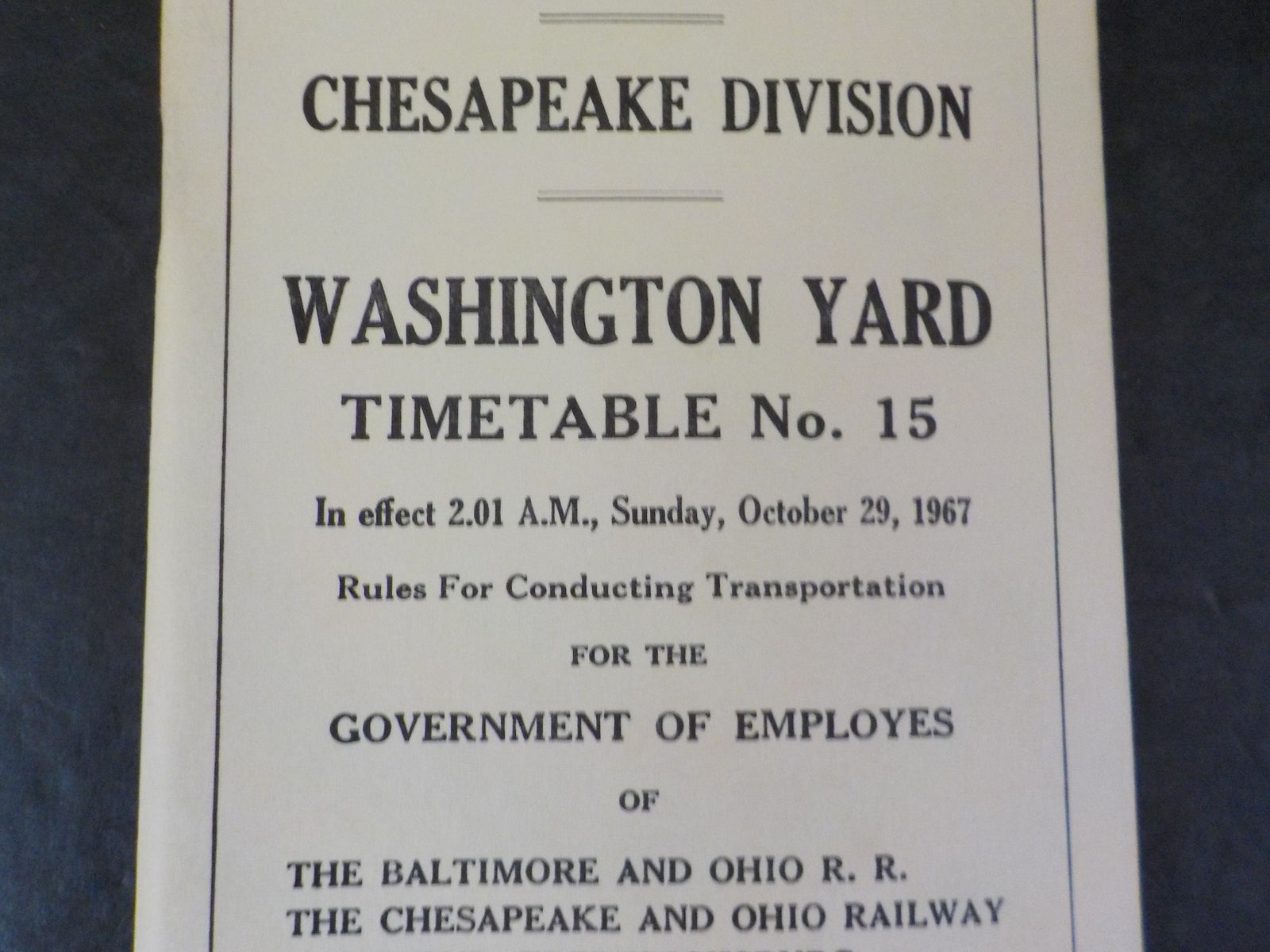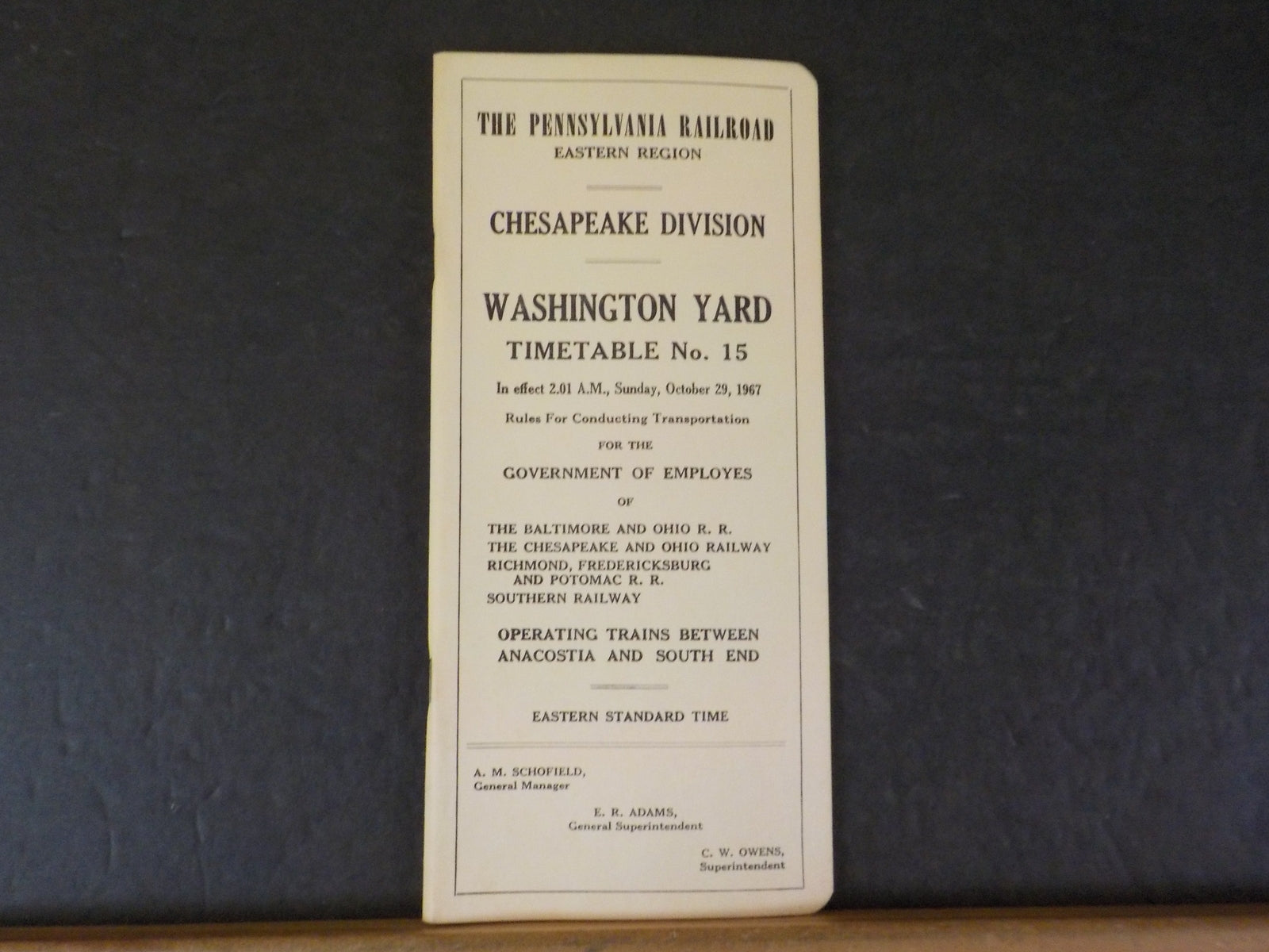 Pennsylvania Railroad Employee Timetable Chesapeake Region Washington Yard #15