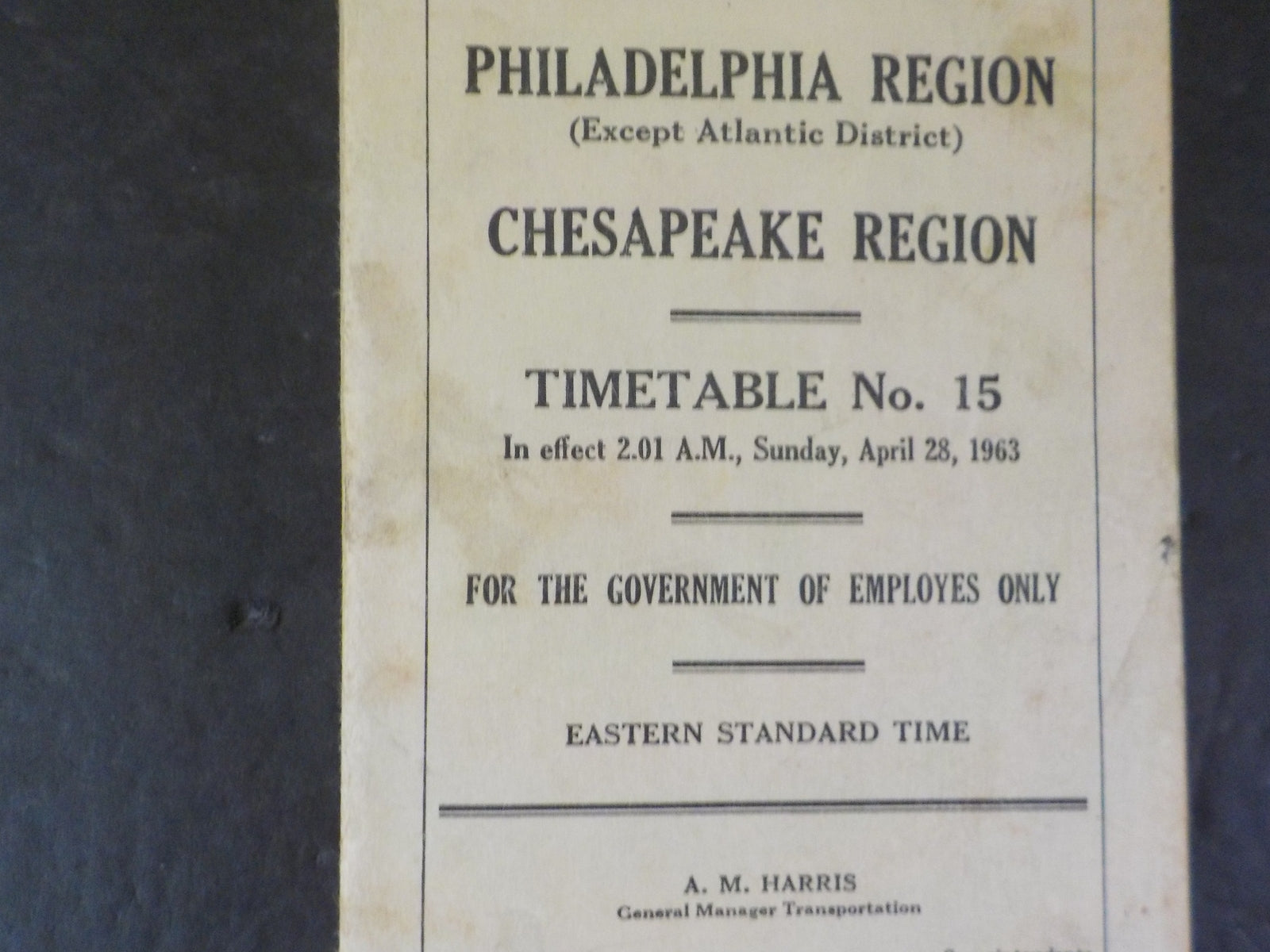 Pennsylvania Railroad Employee Timetable NY Phila Chesapeake Region #15 1963