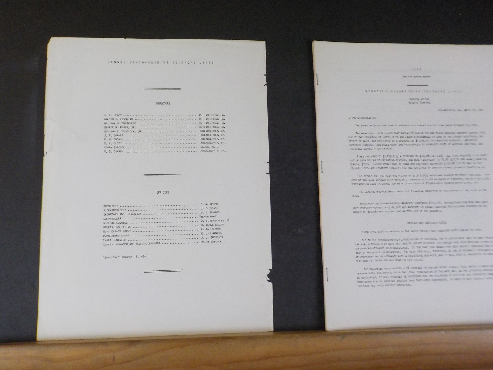 Pennsylvania-Reading Seashore Lines annual report 1945