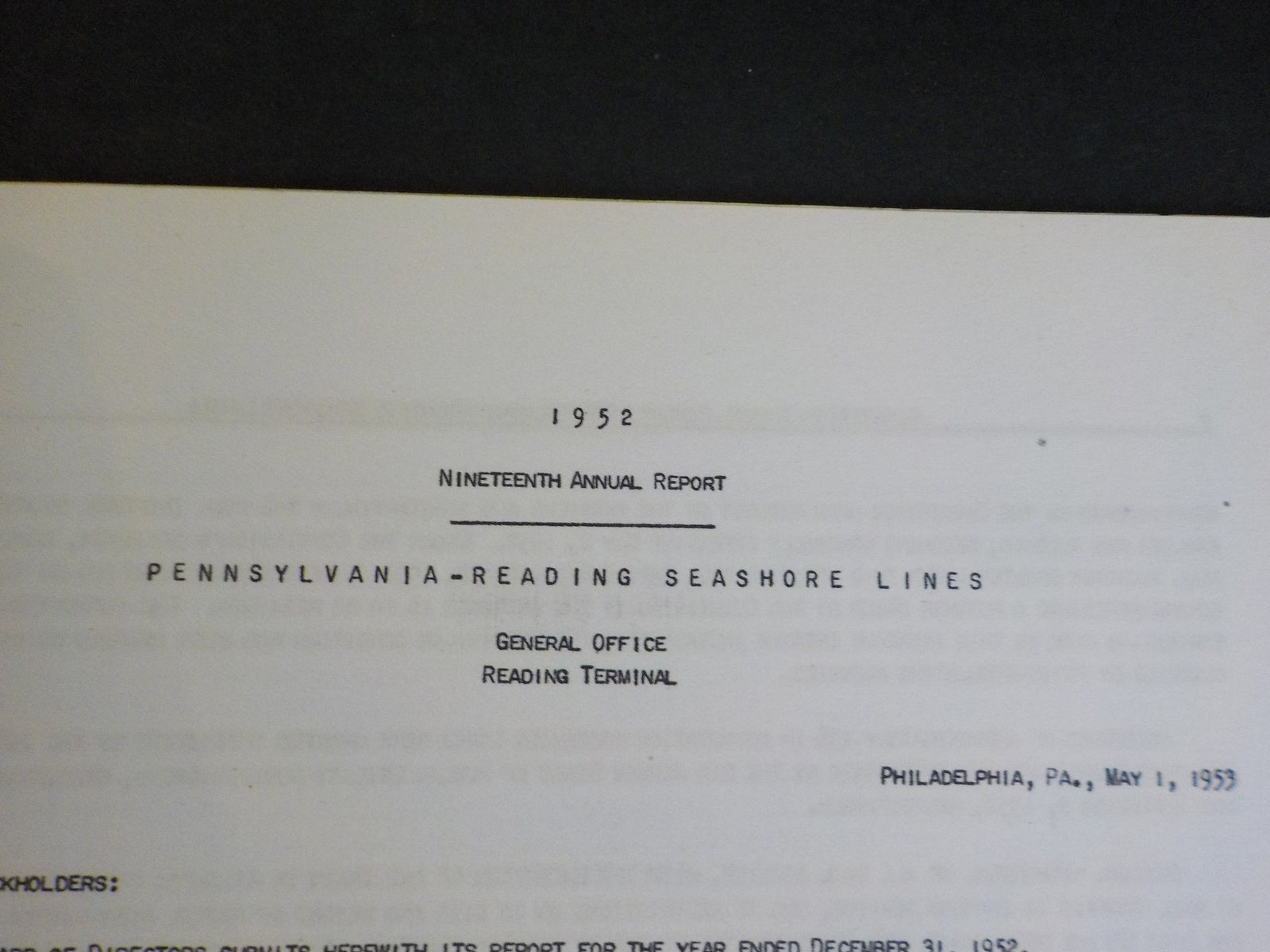 Pennsylvania-Reading Seashore Lines annual report 1952 19th annual