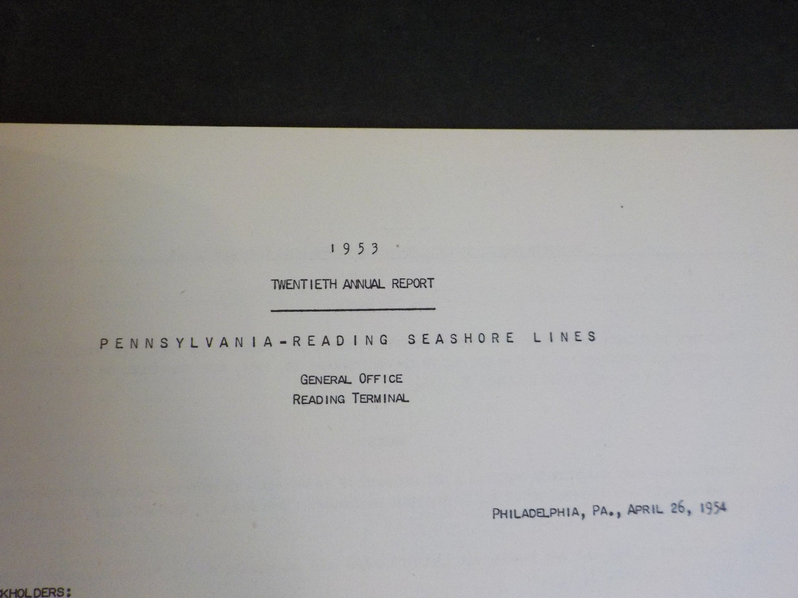 Pennsylvania-Reading Seashore Lines annual report 1953 20th annual