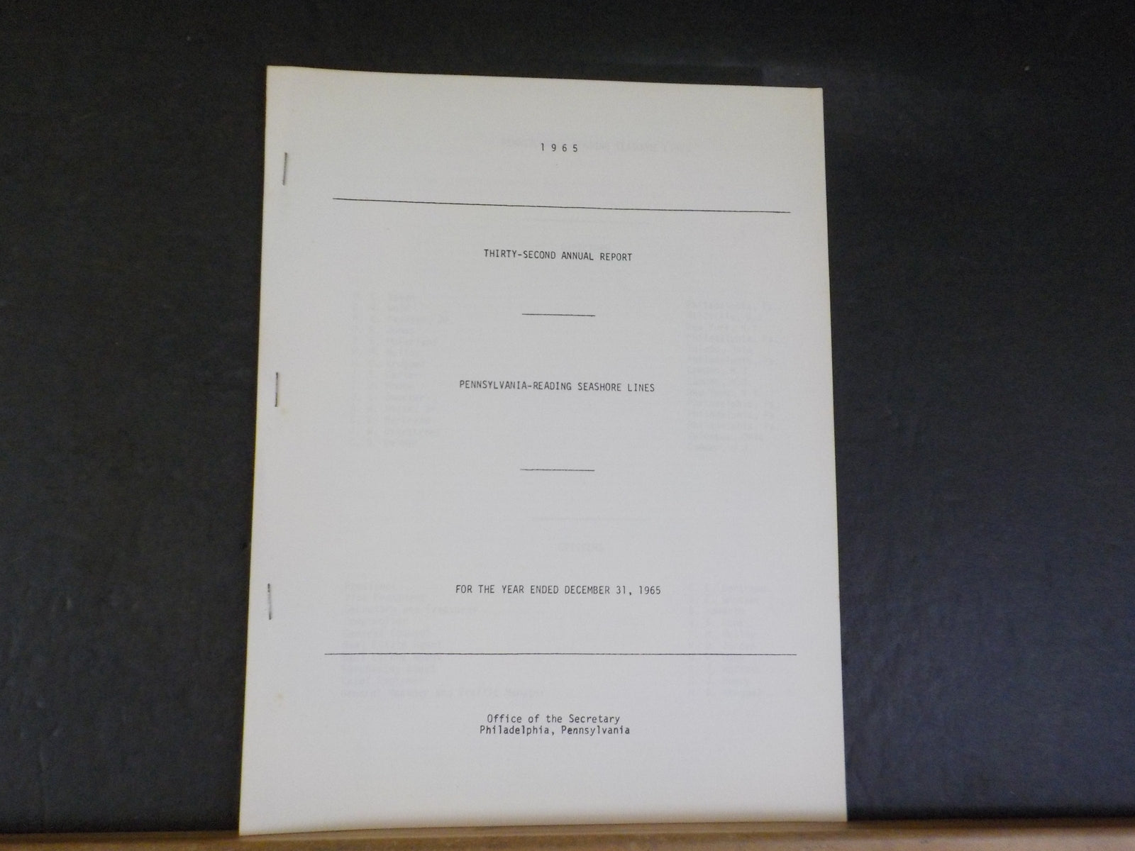 Pennsylvania-Reading Seashore Lines annual report 1965 32nd annual