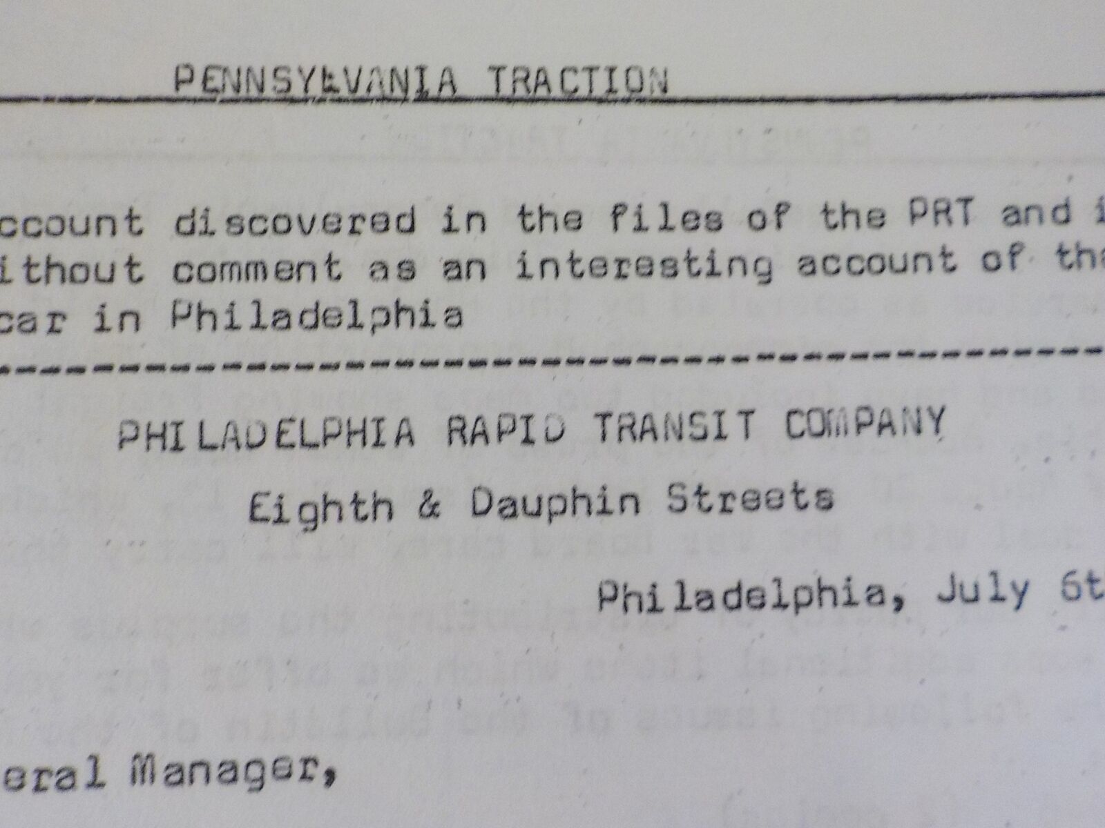 Philadelphia Rapid Transit Co Tariff Sheet
