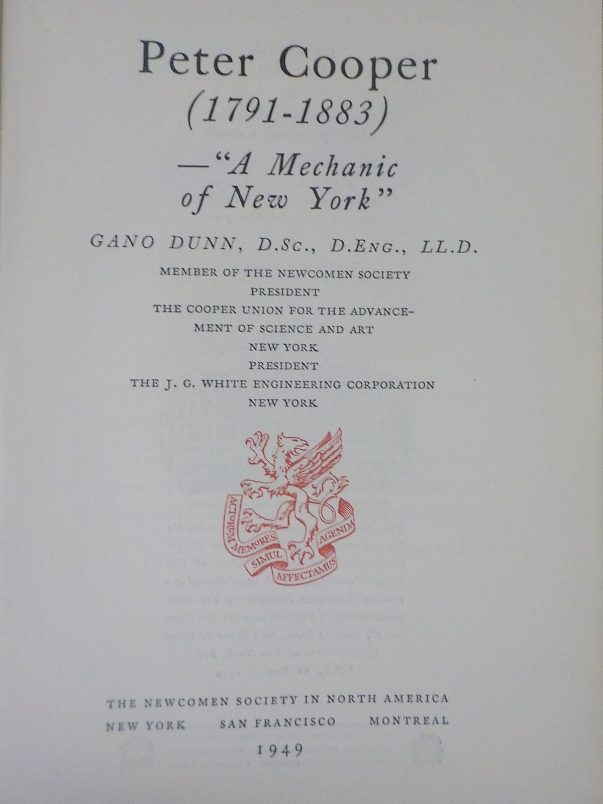 Newcomen Society Peter Cooper (1791-1883) - A Mechanic of New York by Gano Dunn