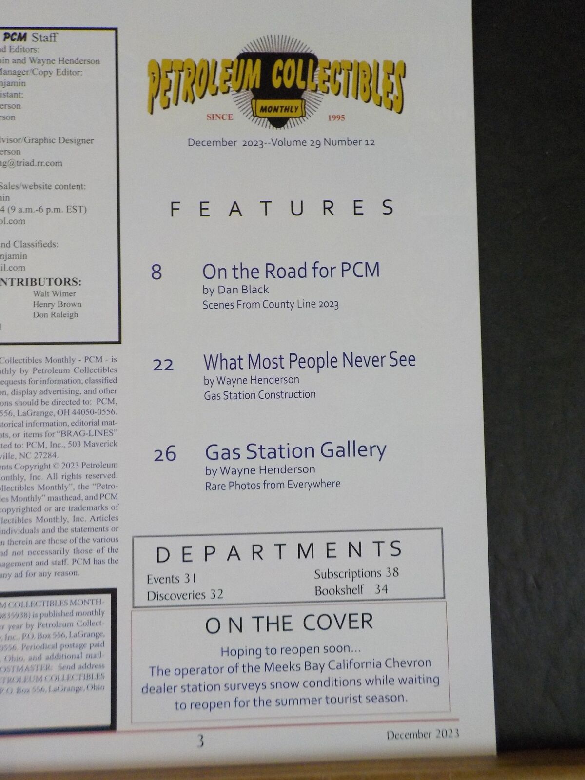Petroleum Collectibles is published monthly. On the cover, Hoping to reopen soon...