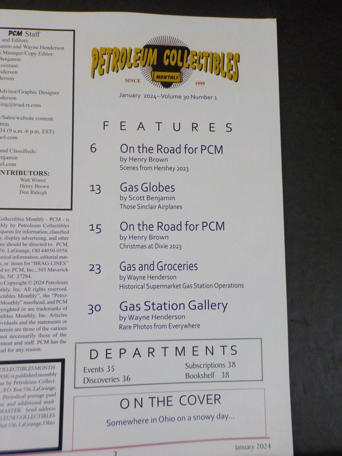 Petroleum Collectibles is published monthly. On the Cover, Somewhere in Ohio on a snowy day...