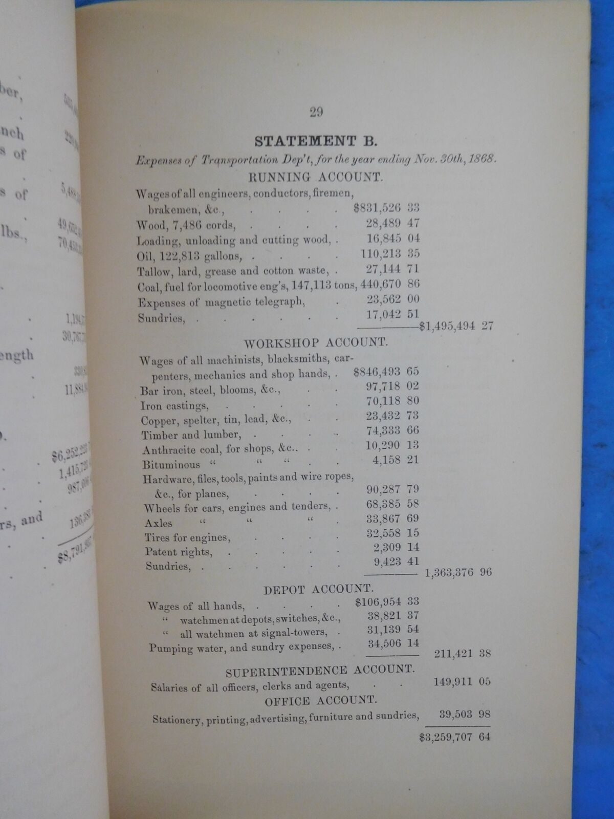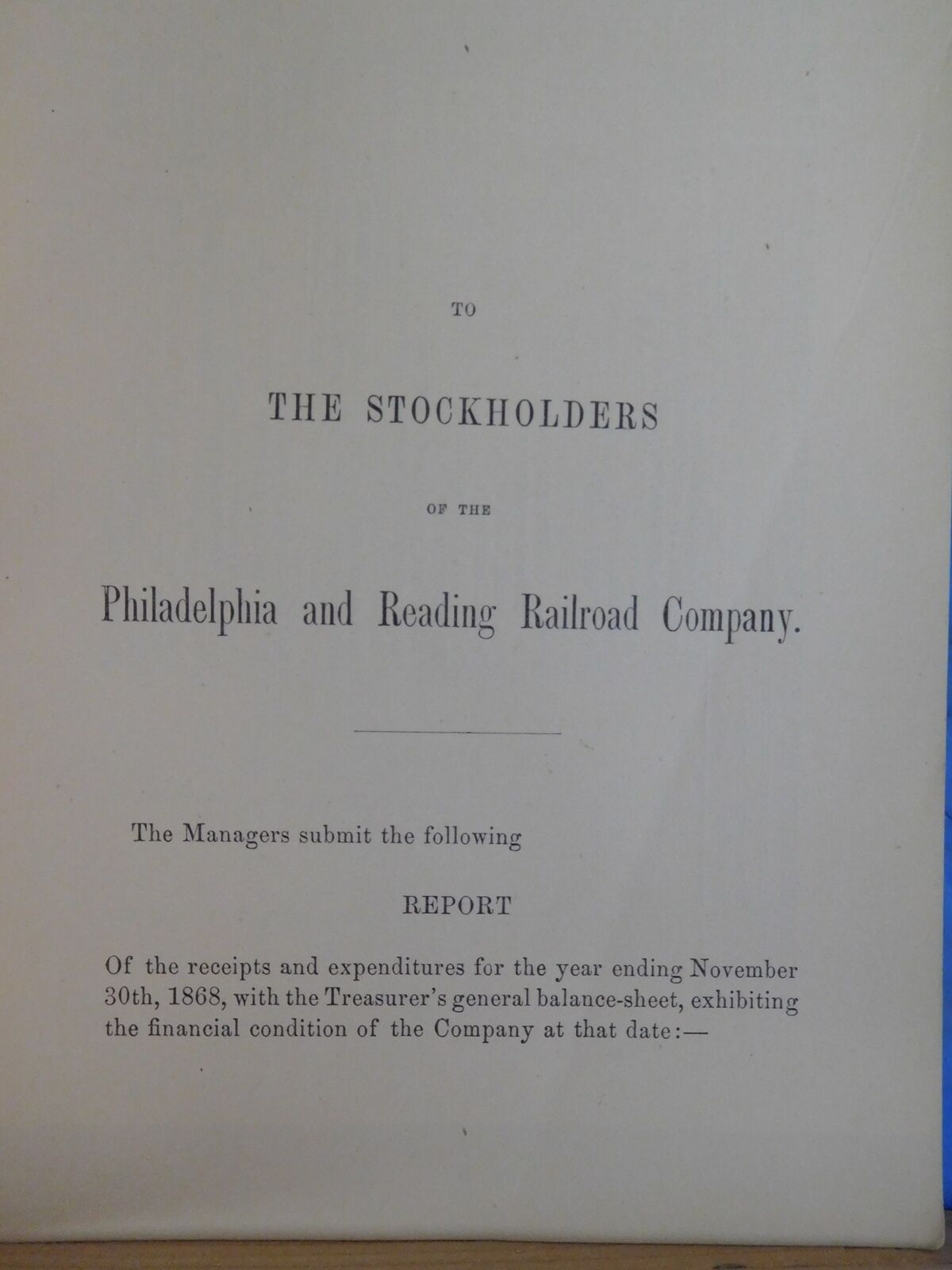 Philadelphia and Reading Railroad CO. for the year ended November 30 1868 FRONT COVER damage