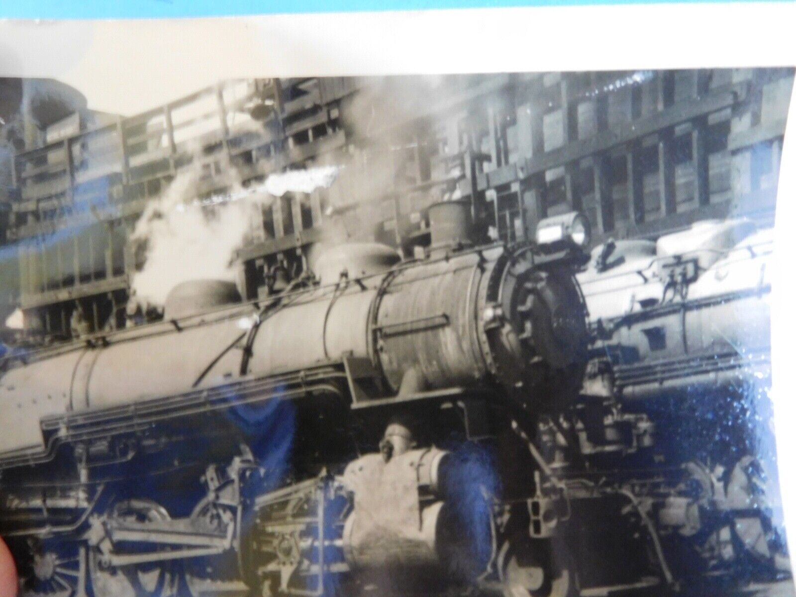 NOTICE the damage in the second photo.    The white area near the steam is actually missing part of the photo.  THere is a crease -look at the back to the right os 2830, very light.