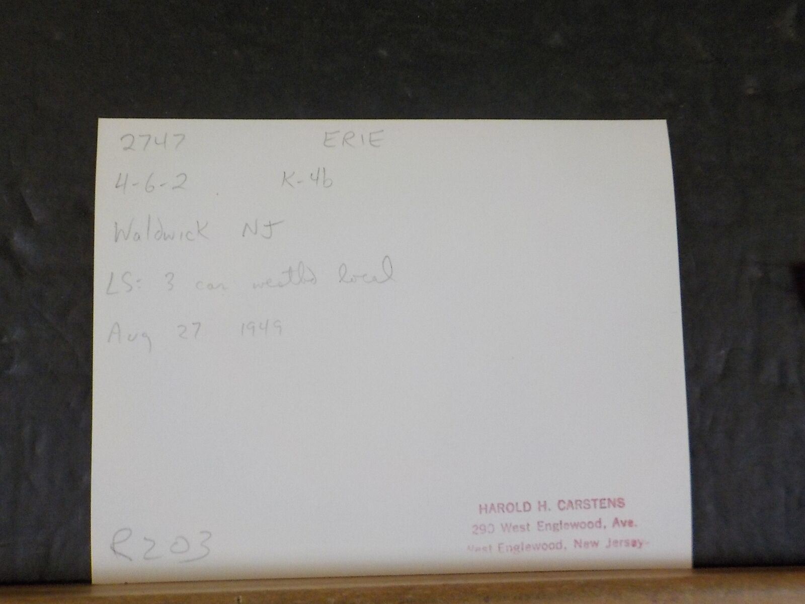 Photo Erie Locomotive #2747 Black & White 4X5 Waldwick RI 1949