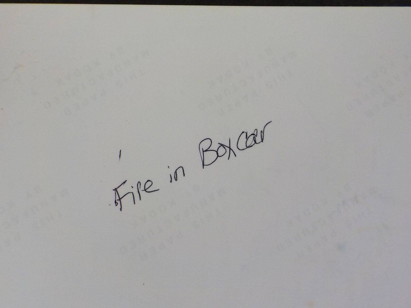 Photo Fire in Boxcar Kansas? Road and date unknown Black & White