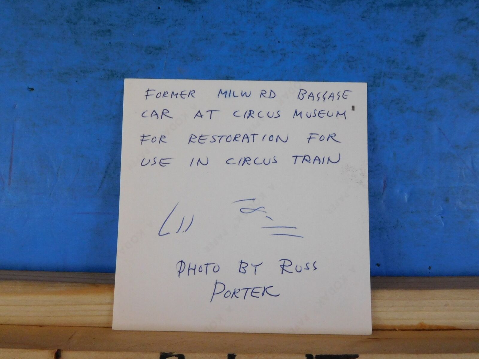 Photo Former Milw Rd Baggage Car at Circus Museum for Restoration for use in Circus Train