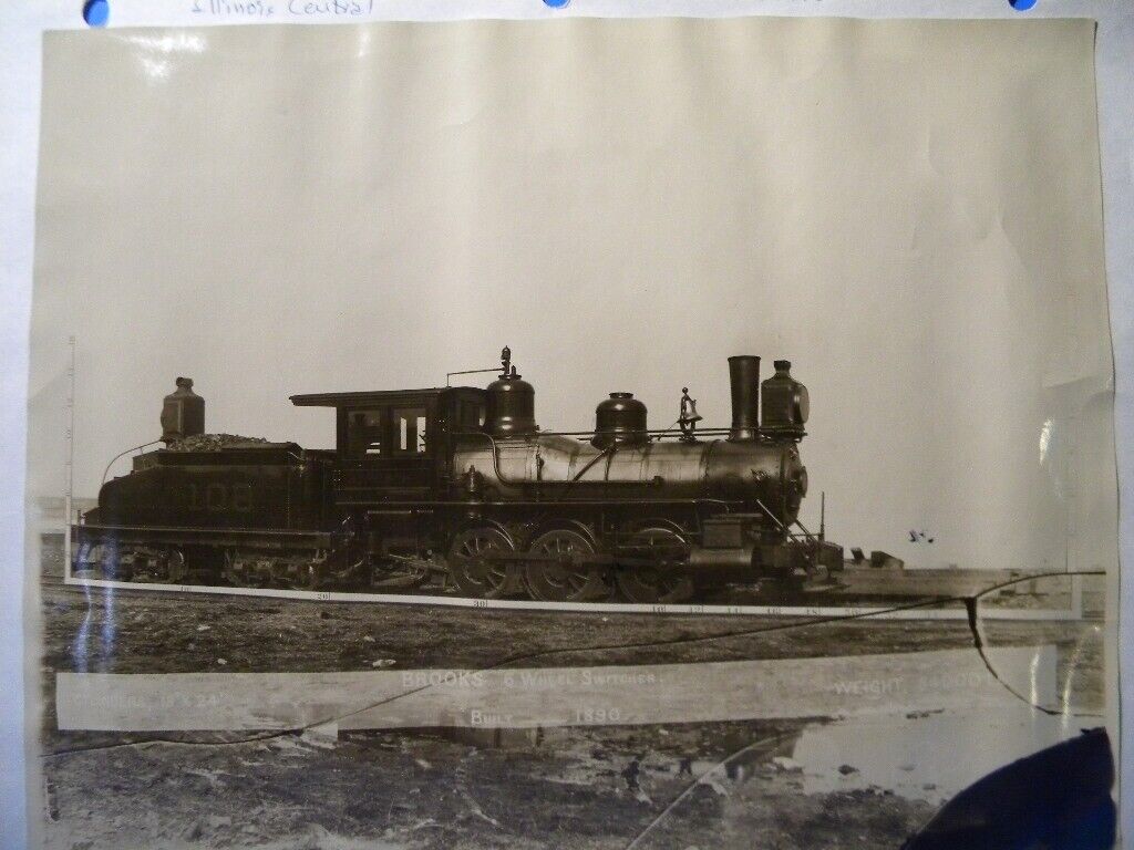 Photo IC #108 Illinois Central 8 wheel switcher steam lcoomotive Black & White