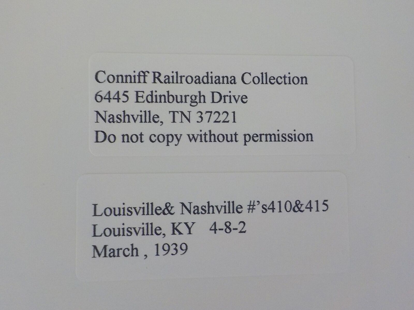 Photo Louisville & Nashville Locomotive #410 & 415 L&N 1939 8 x 10 B&W