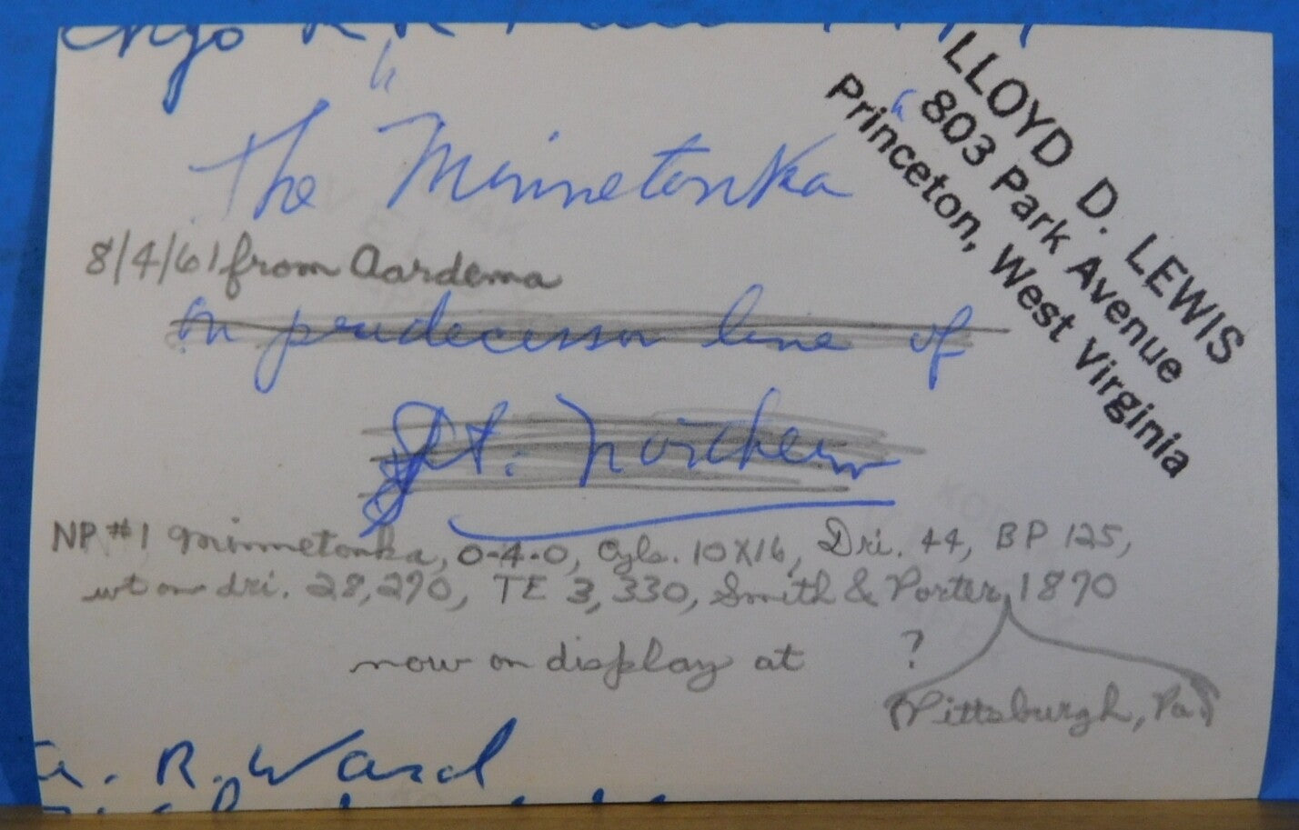 Photo Minnetonka Locomotive. Date and location unknown. Approx. 2 X 4 Inches