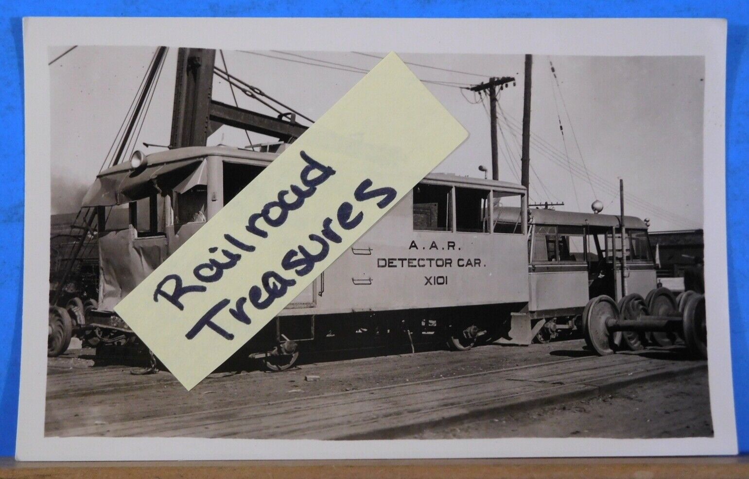 Photo Postcard AAR inspection car X101 Date and location unknown. Approx. 3
