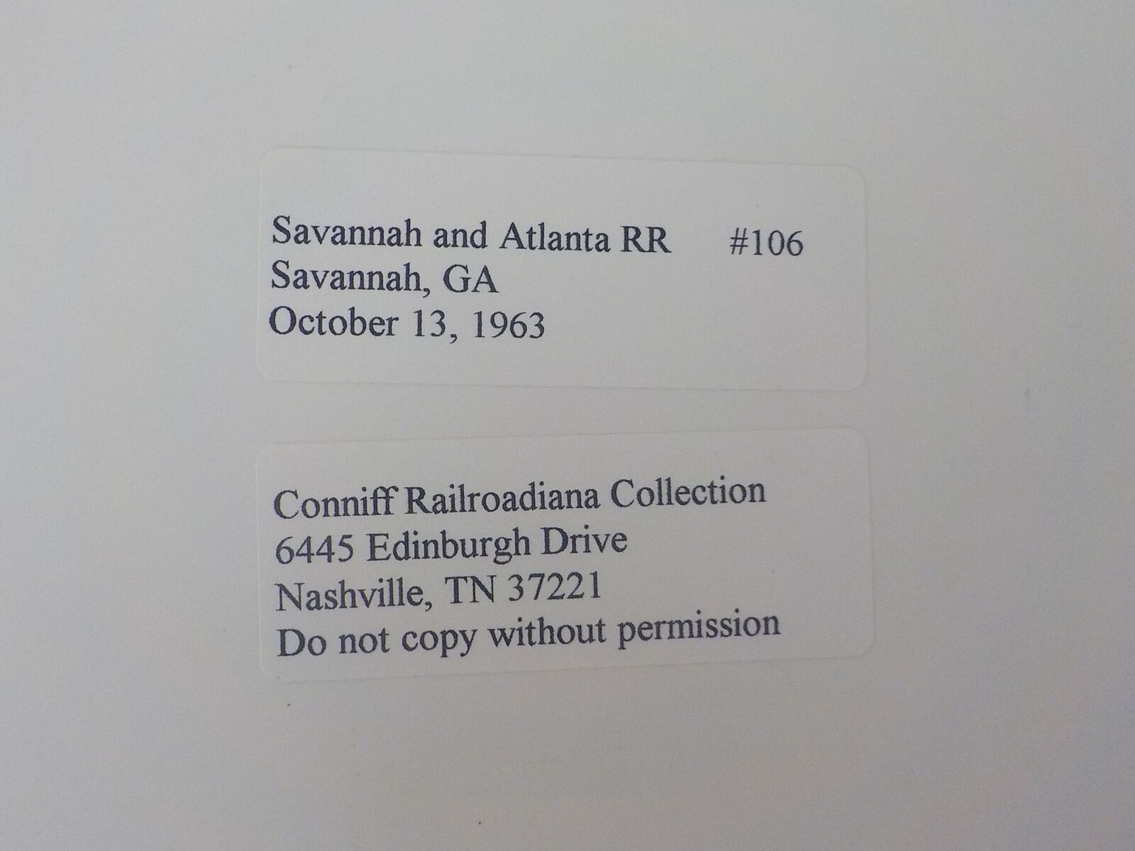 Photo Savannah & Atlanta Locomotive #106 Savannah GA Oct 1963 8X10 B&W